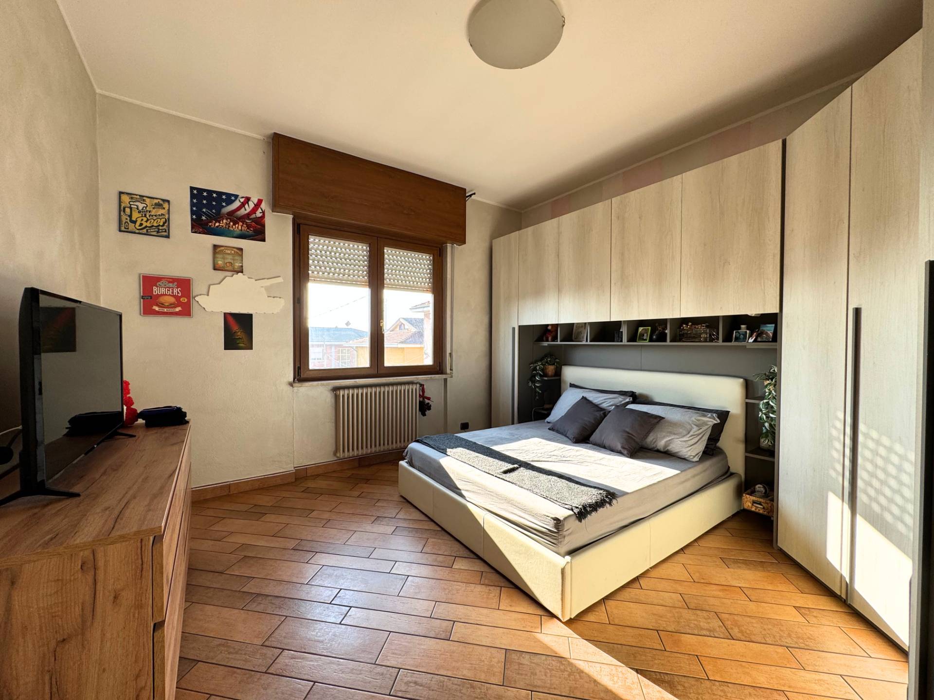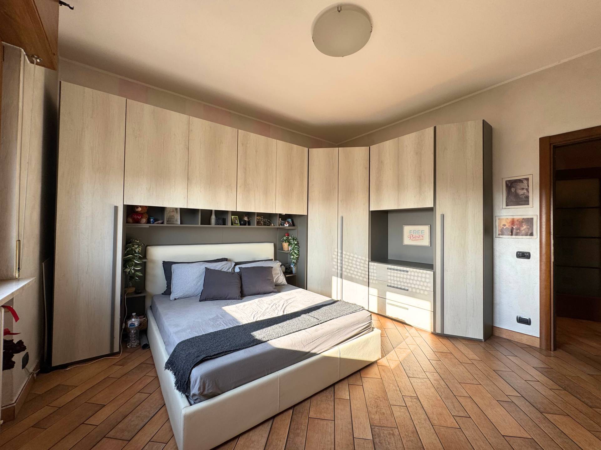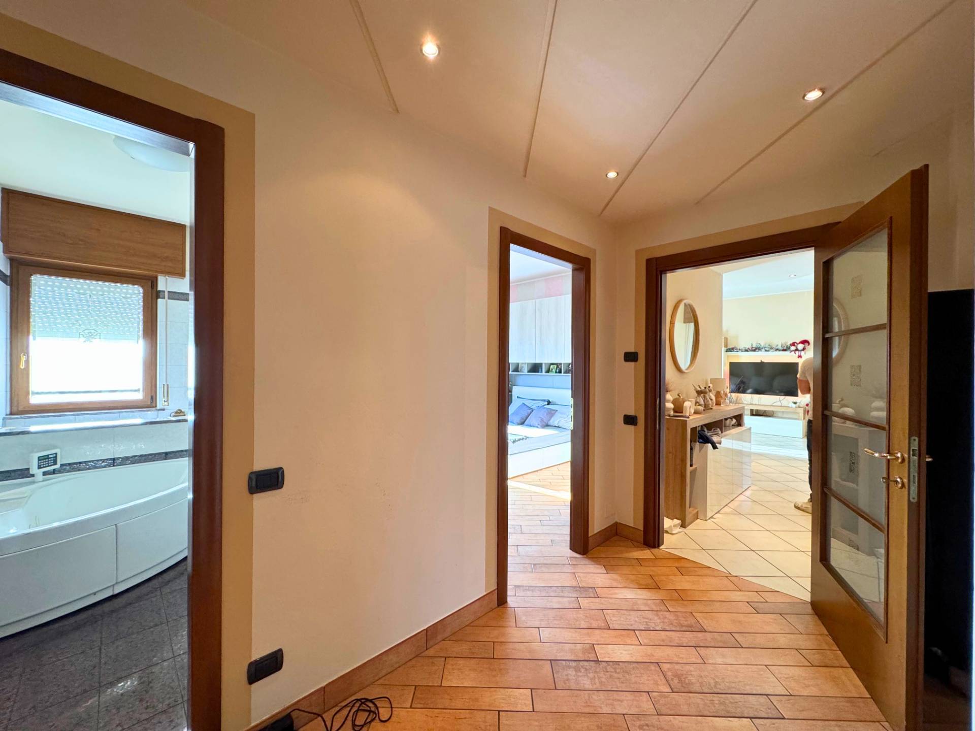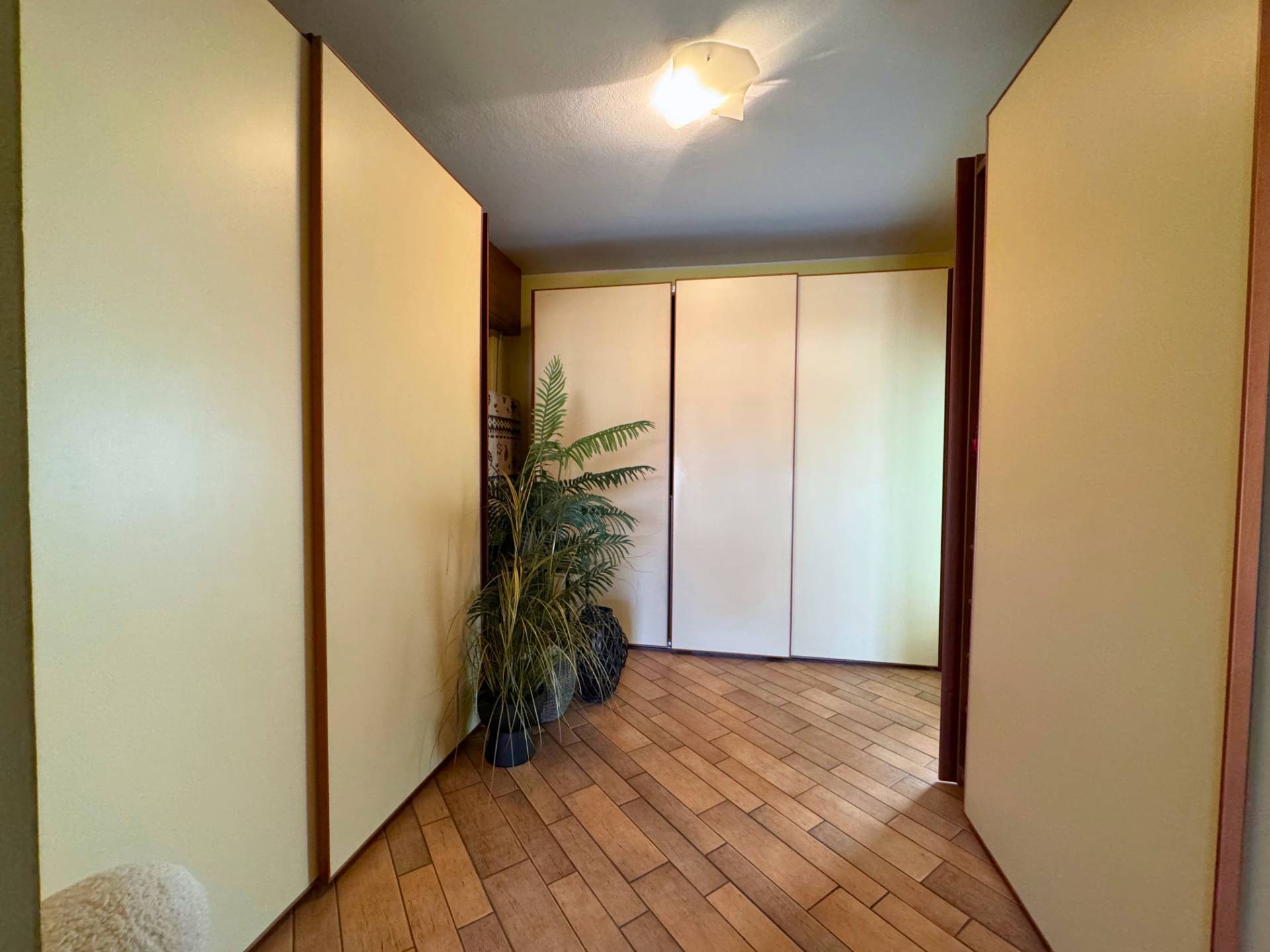 La prima camera si trova sulla destra, sulla sinistra troviamo la seconda camera, il bagno, il ripostiglio ed in fine la camera padronale con grande cabina armadio e bagno privato.