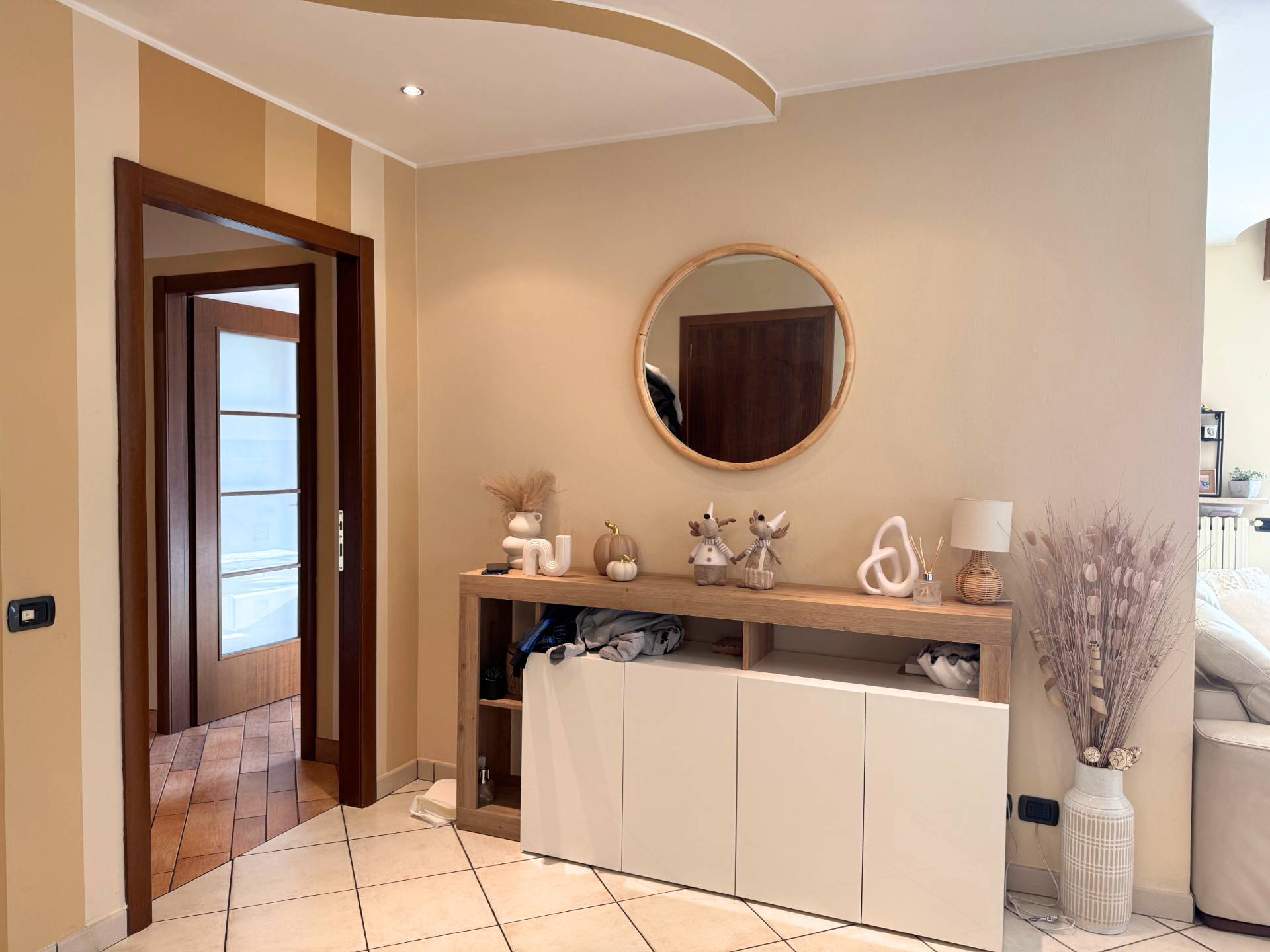 L'appartamento è stato ristrutturato e si presenta in eccellenti condizioni, pronto da abitare. Dispone di serramenti in pvc con doppio vetro, pavimenti in ceramica, camino in sala, e portoncino d'ingresso blindato.