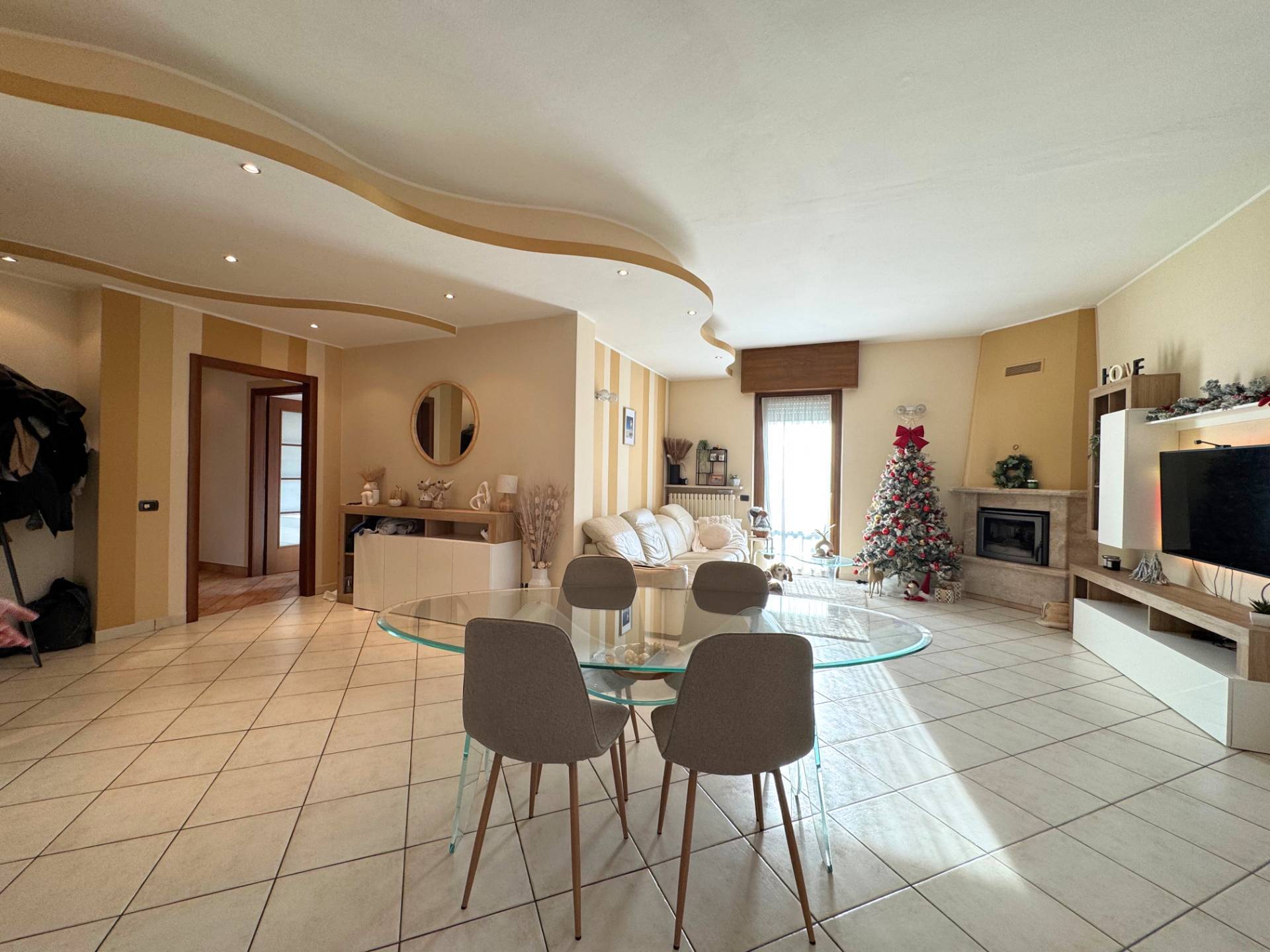Si accede alla zona giorno composta da uno spazio Open-Space che mitiga la zona living e la cucina con isola centrale che domina l'ambiente. Dalla sala sono presenti gli accessi a due balconi con 3 lati liberi. Dalla sala il lungo corridoio accede alla zona notte composta da 3 ampie camere da letto,