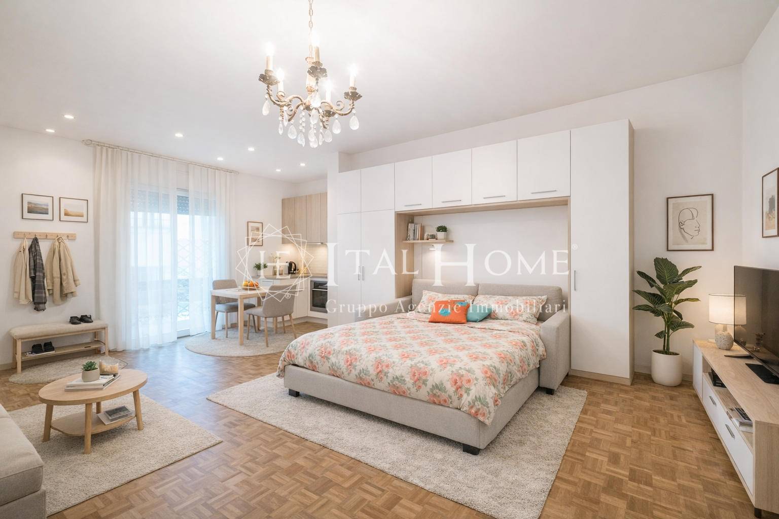 LOFT-OPEN SPACE-GRANDE MONOLOCALE come nuovo, pronto da abitare, con spaziosa zona giorno-living-zona notte con vetrata ed accesso diretto alla grande balconata riservata ed esclusiva e bagno finestrato tutto nuovo con lavatrice ed asciugatrice.