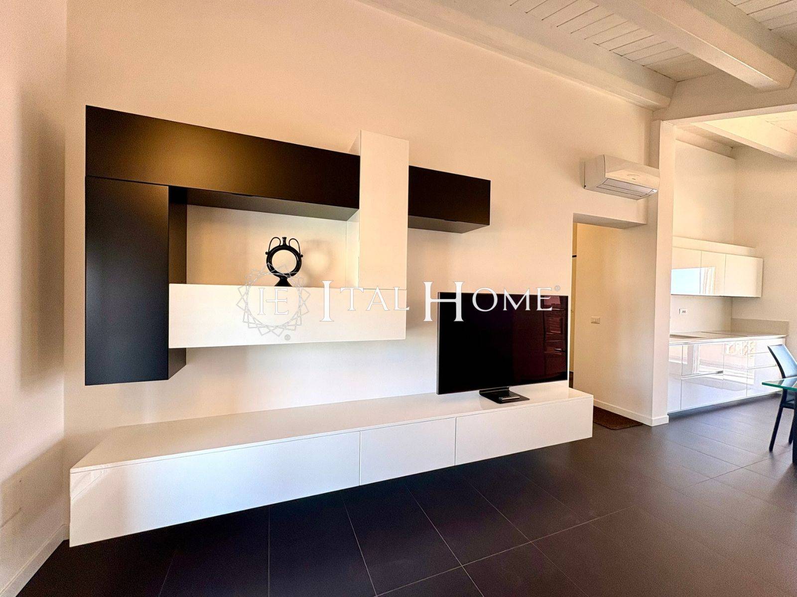 L'ingresso accompagna in un grande e luminoso salone con moderna cucina abitabile a vista e bagno.