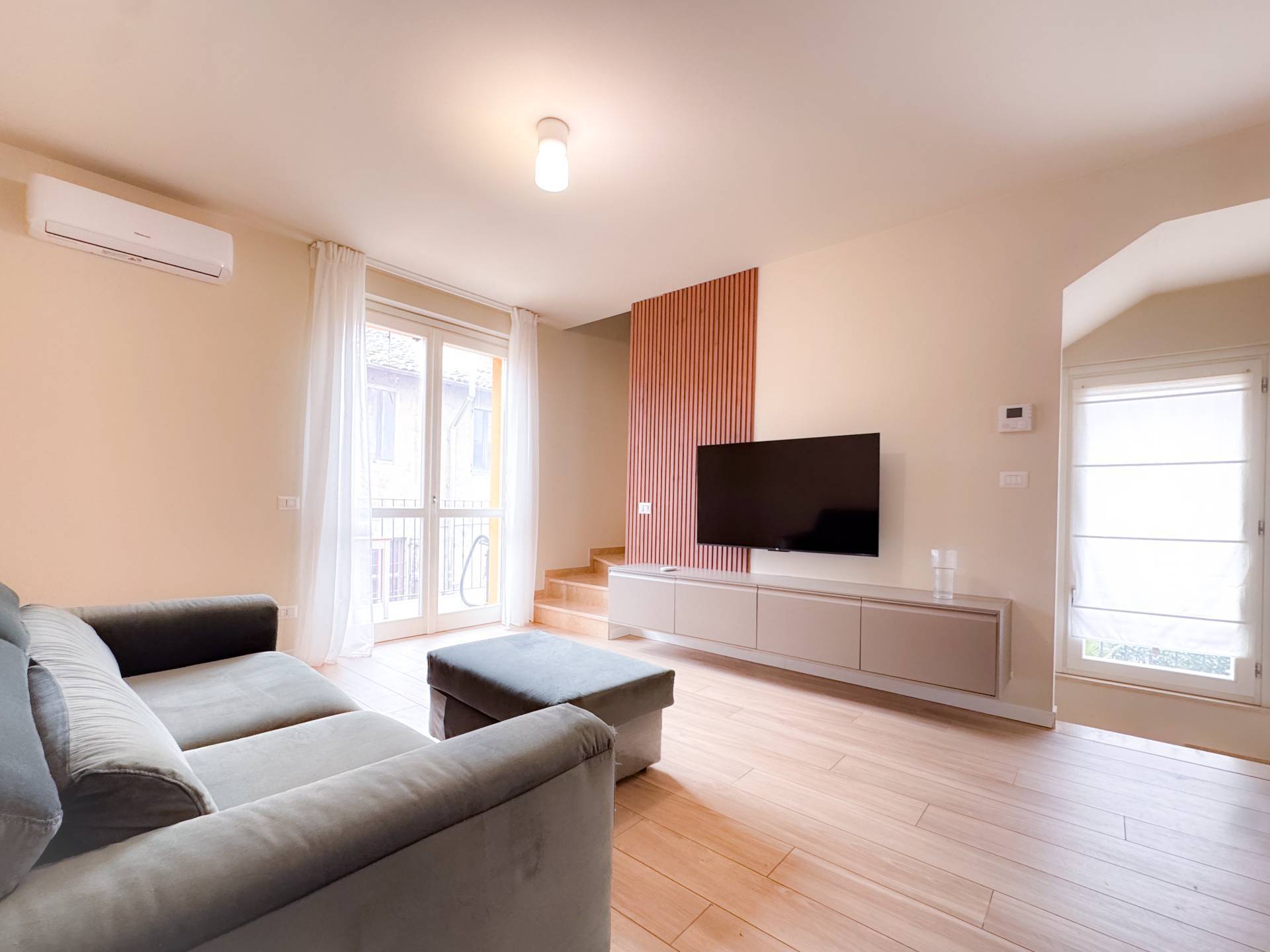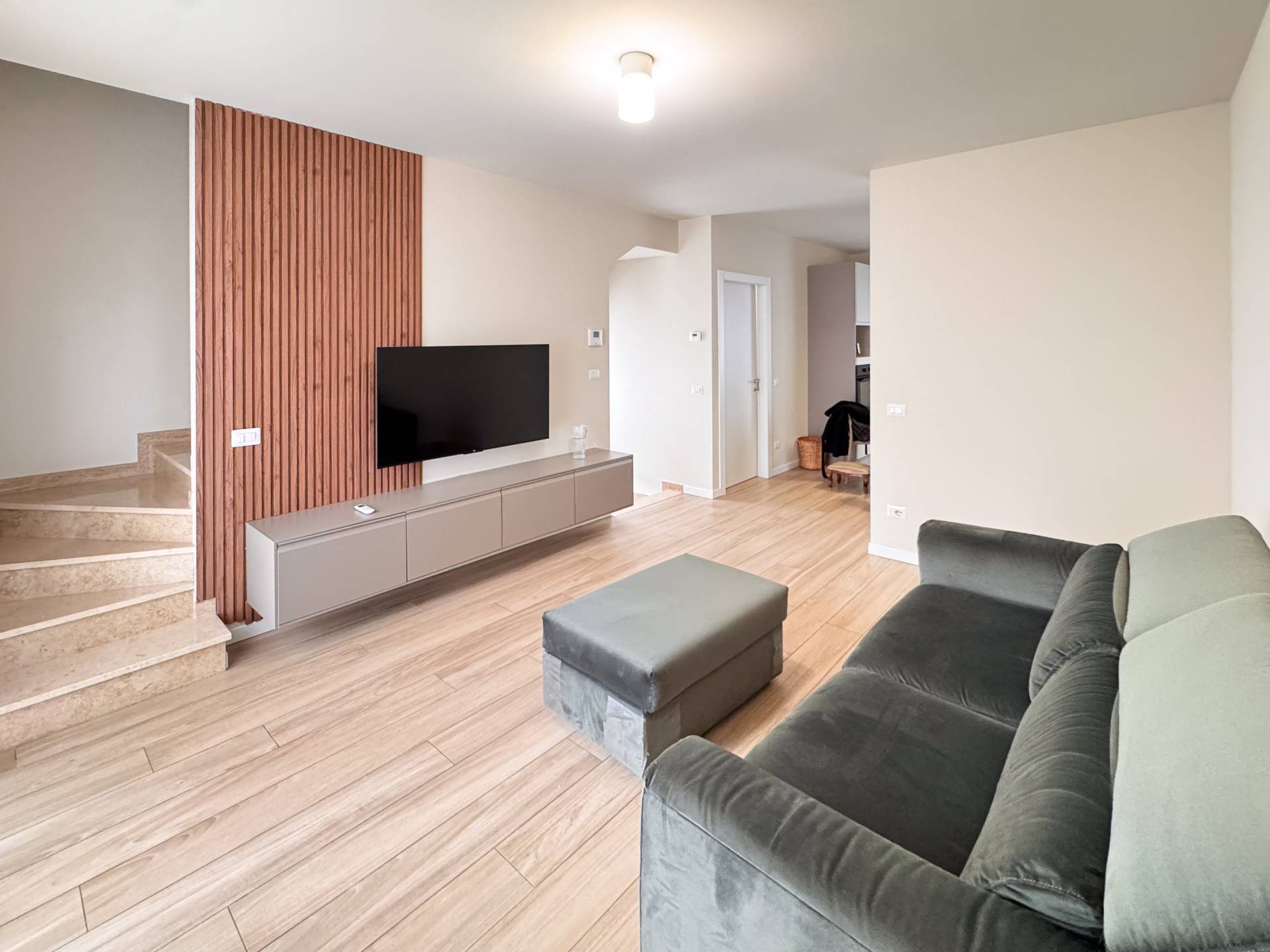 Trilocale ristrutturato con giardino privato, terrazzo e doppio garage