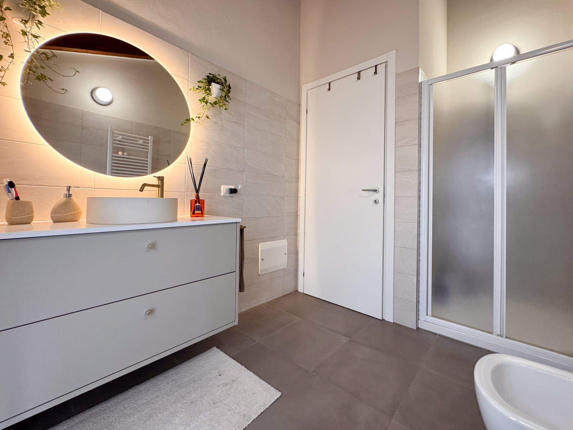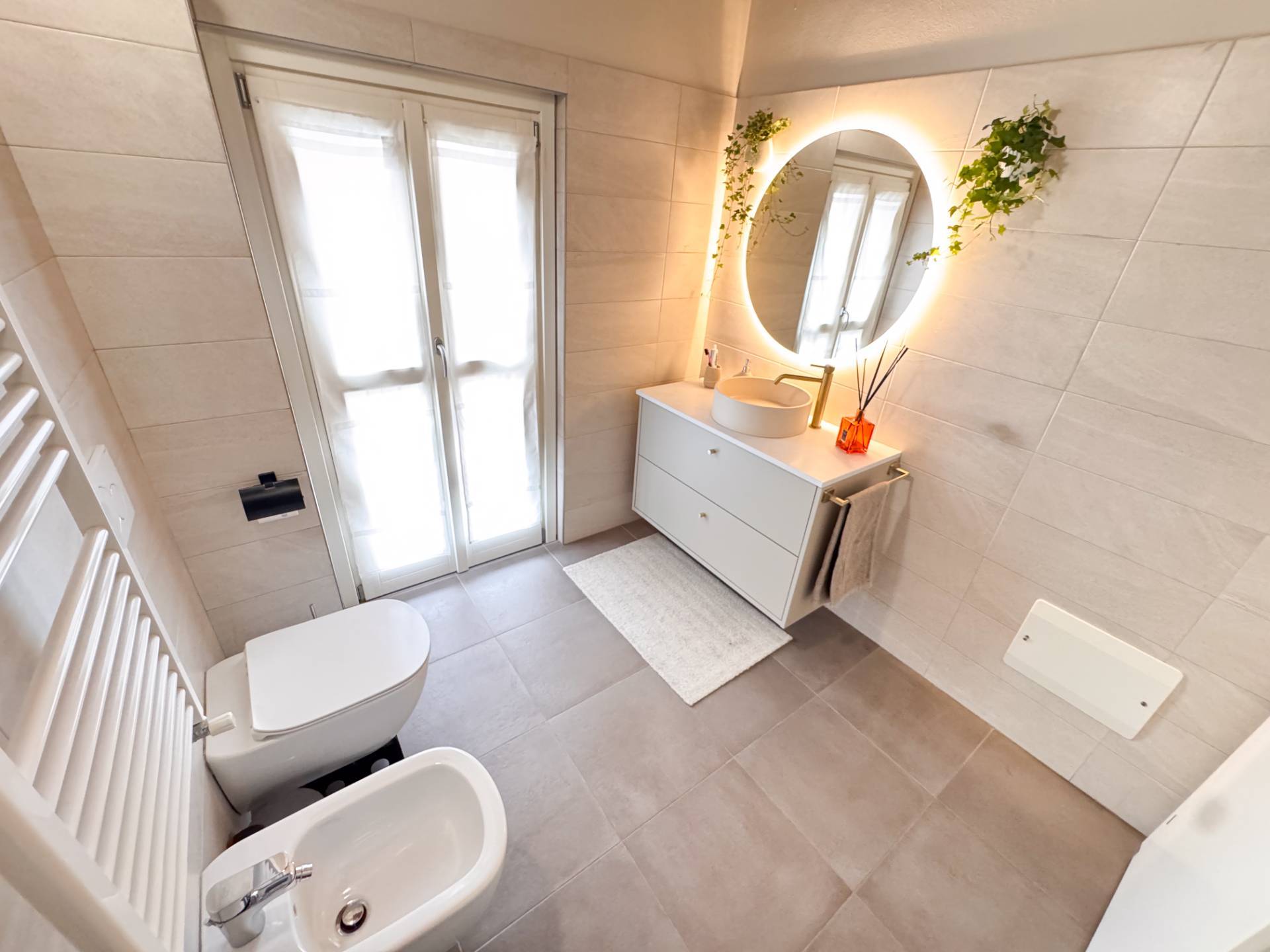 L'appartamento è stato completamente ristrutturato e si presenta in eccellenti condizioni, caratterizzato da finiture moderne e materiali di alta qualità. Gli ambienti sono studiati per offrire funzionalità e comfort, con una distribuzione razionale degli spazi che garantisce luminosità e una piacevole sensazione di ampiezza in ogni locale. La soluzione si presta perfettamente a una famiglia di tre persone o a una coppia che desideri spazi ben organizzati e vivibili.