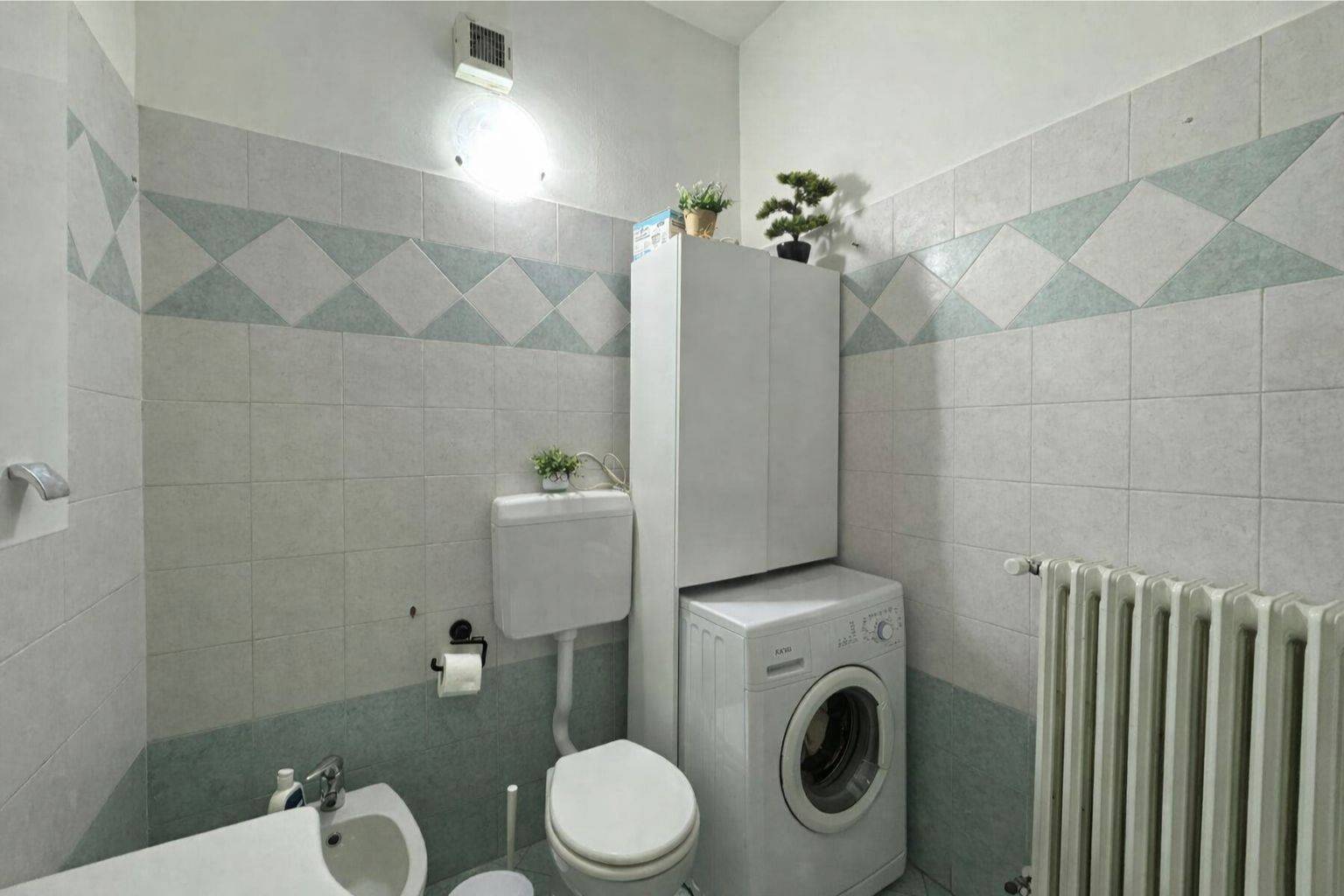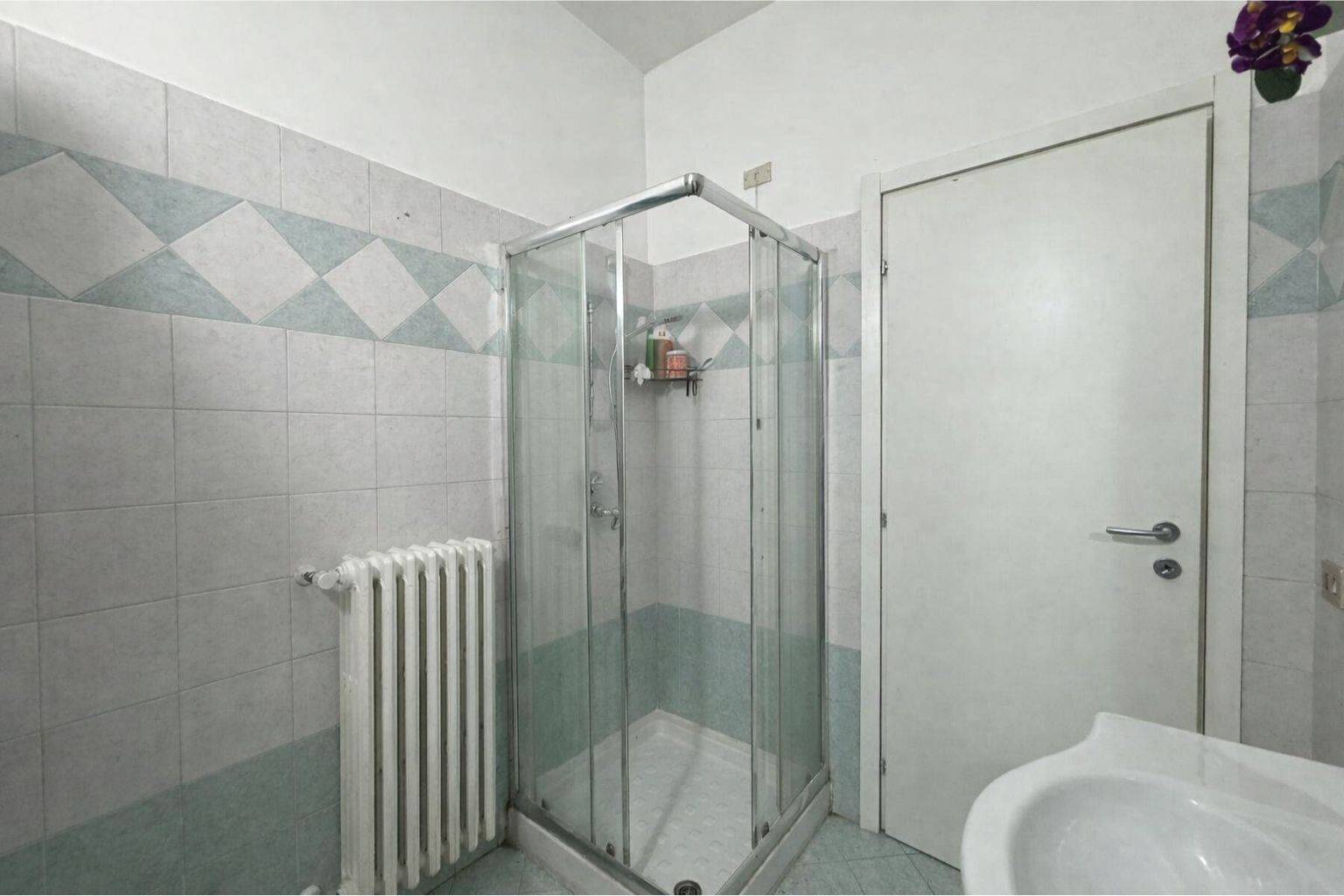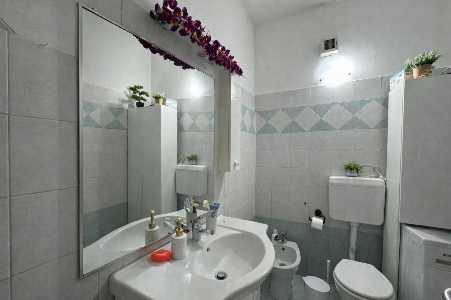 Il disimpegno conduce al bagno non finestrato ma con l'impianto di ricircolo dell'aria che permette il giusto ricircolo dell'aria anche quando si fa la doccia, il bagno è completo di box doccia, sanitari, lavello e lavatrice. Dal disimpegno si accede alla camera da letto matrimoniale di generose dimensioni con accesso al terrazzo che corre lungo tutto il lato della casa.