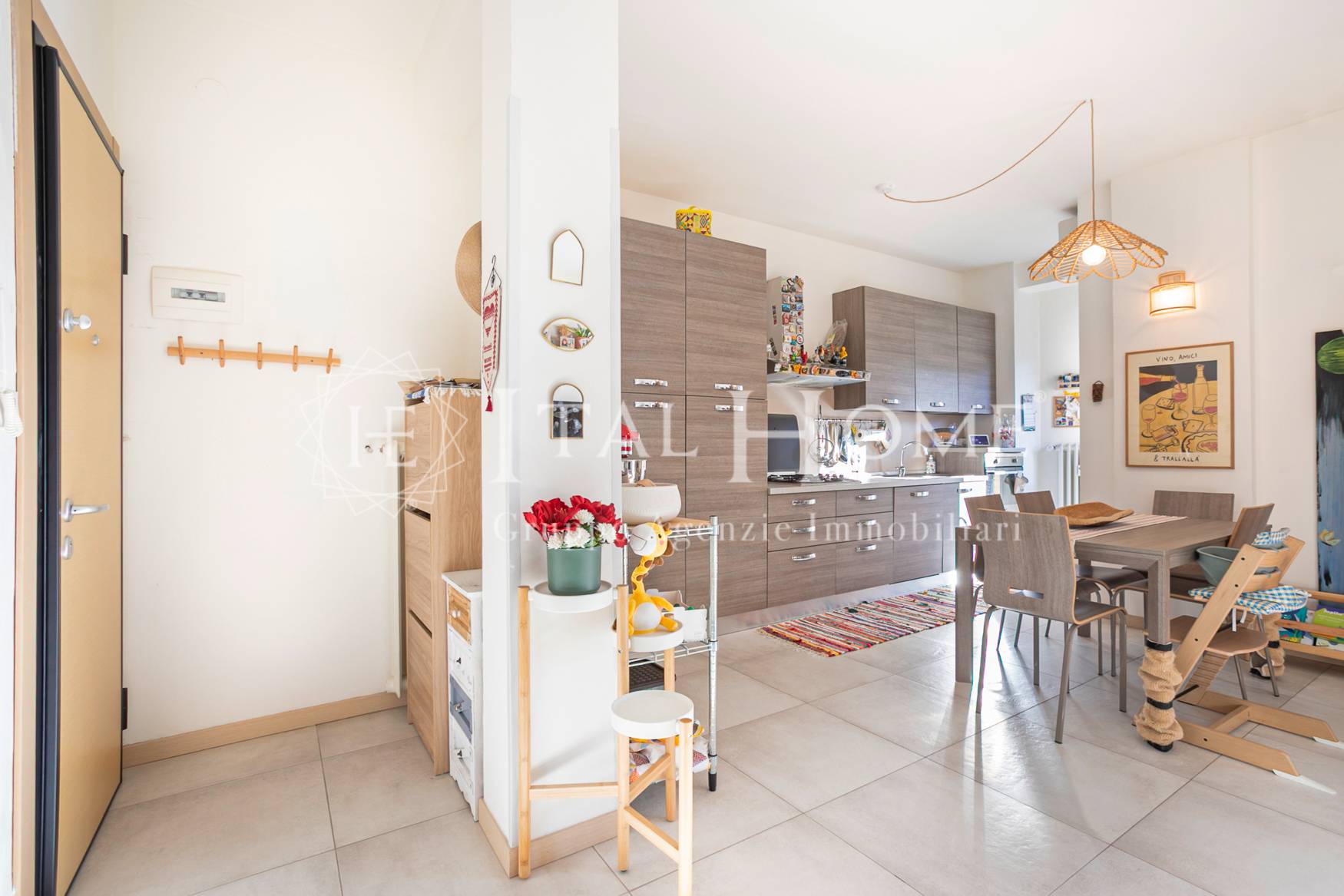L'immobile si compone di: ingresso, sala con cucina a vista, entrambe affacciate al balcone, ripostiglio, disimpegno notte, due camere da letto e un bagno finestrato, con doccia xxl, sanitari sospesi e termoarredo. A completare l'offerta troviamo la cantina di proprietà e numerosi posti auto condominiali disponibili per i residenti.