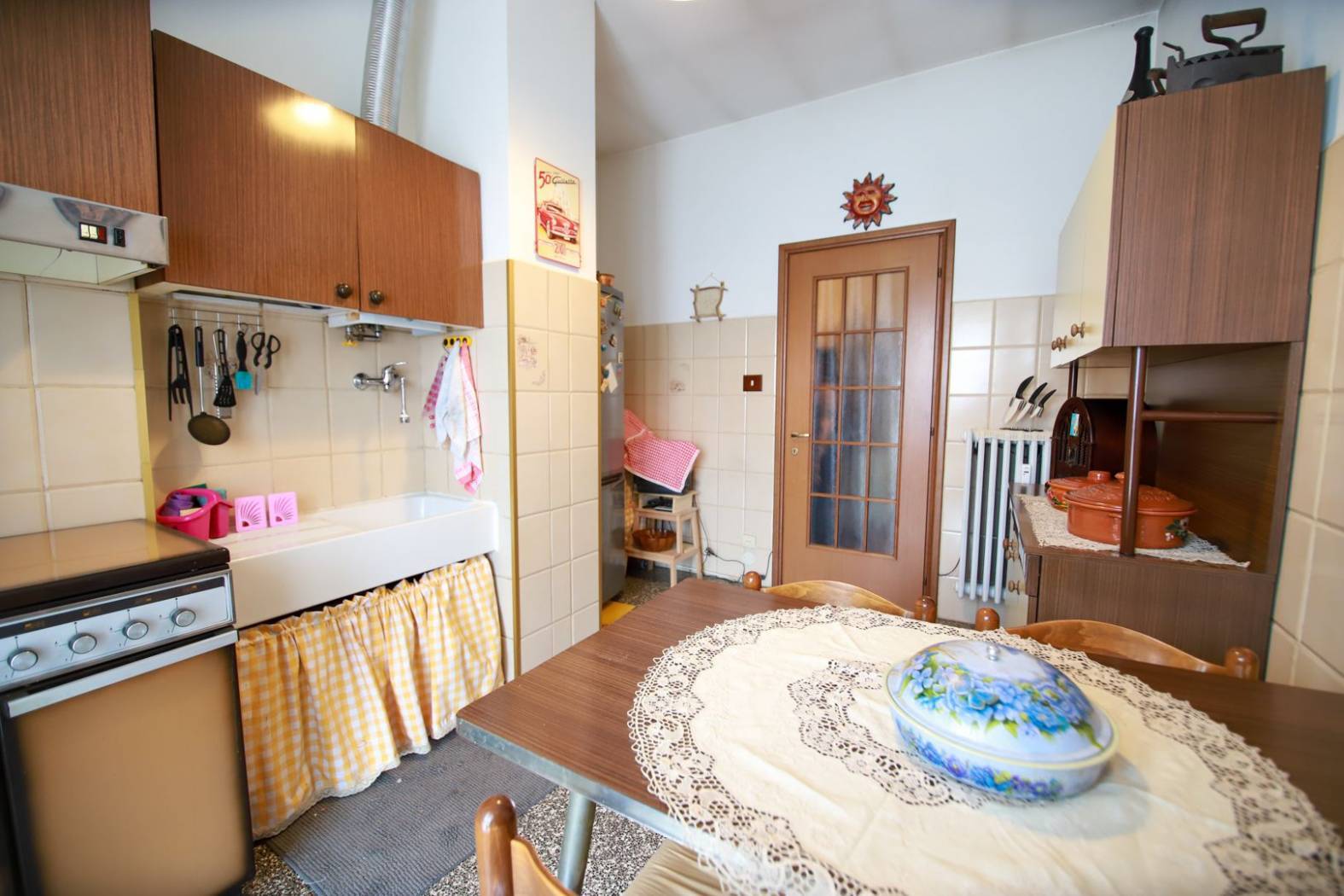 L'appartamento è ubicato al piano secondo senza ascensore in una piccola palazzina anni 60 in centro paese, con tutti i servizi sotto casa raggiungili a piedi, e non ci sono spese condominiali.