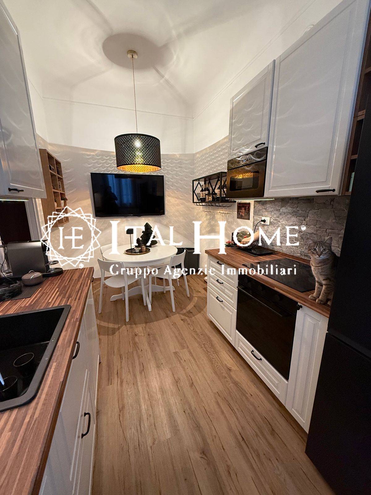 Viene venduto completamente arredato e corredato con elettrodomestici di ultima generazione (piano a induzione, lavastoviglie, lavasciuga, microonde).