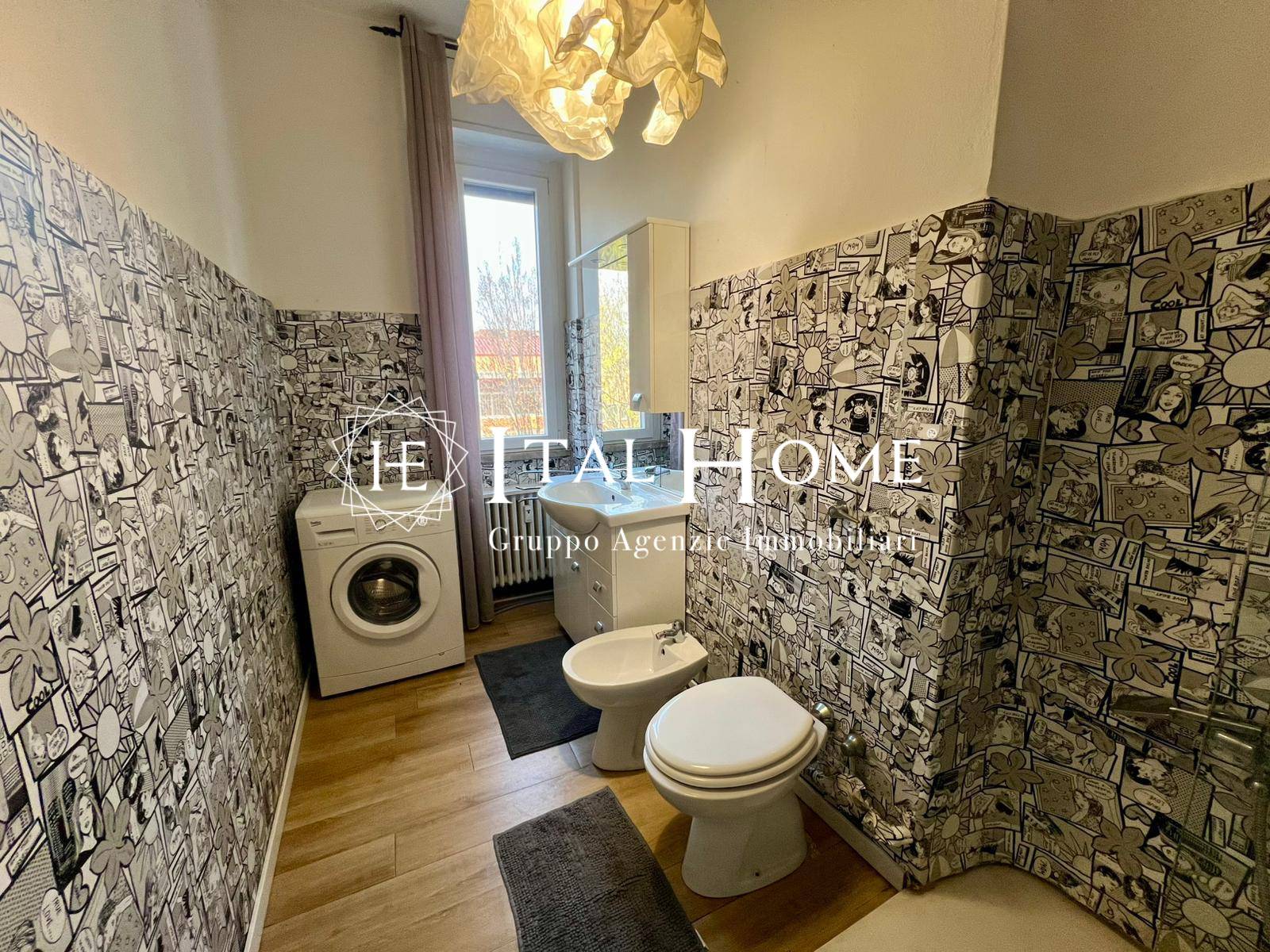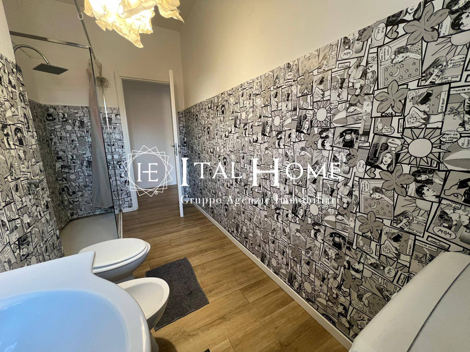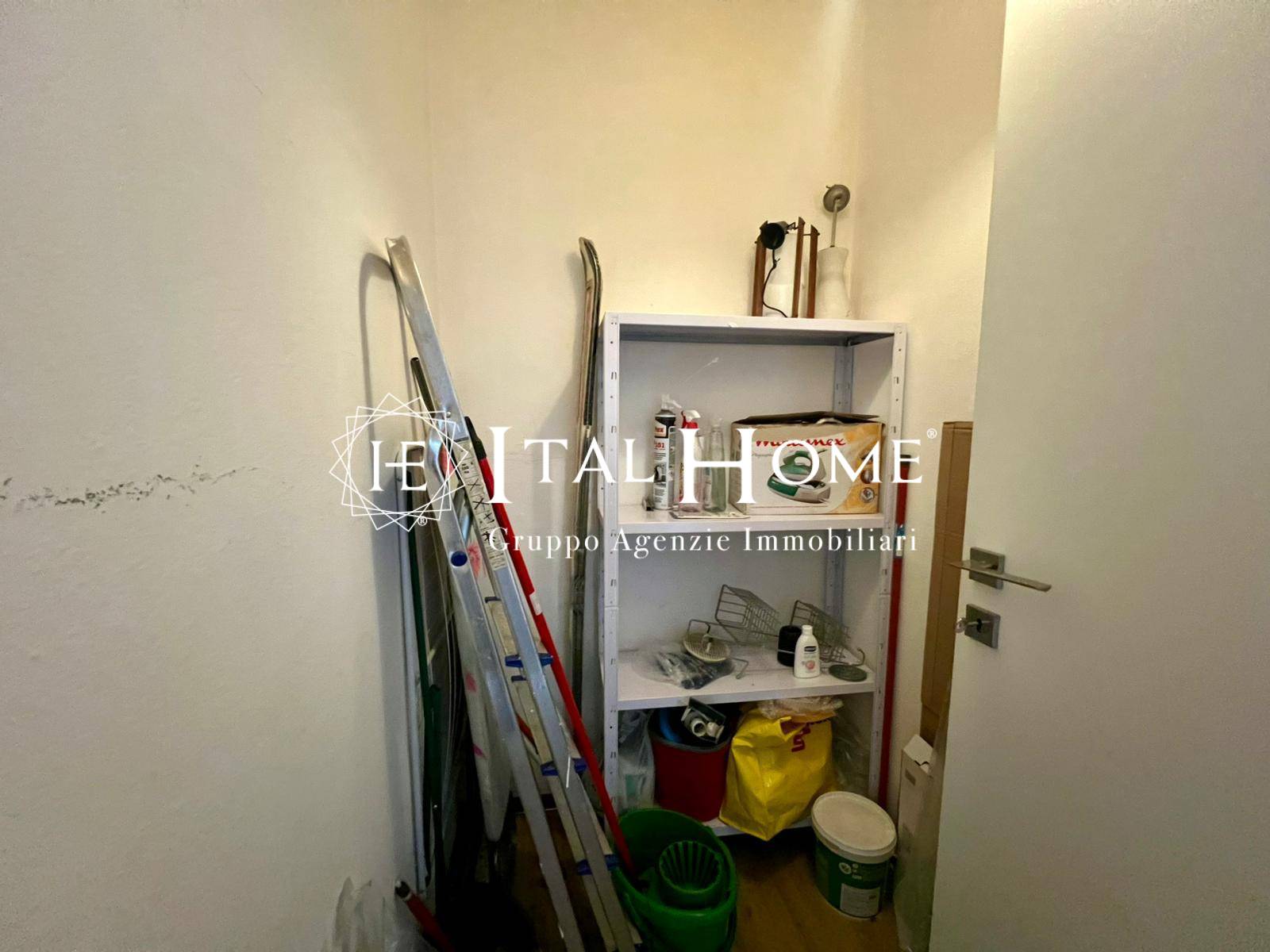 Spazi comuni: Cucina abitabile moderna e separata, bagno finestrato con finiture di pregio e un pratico ripostiglio.