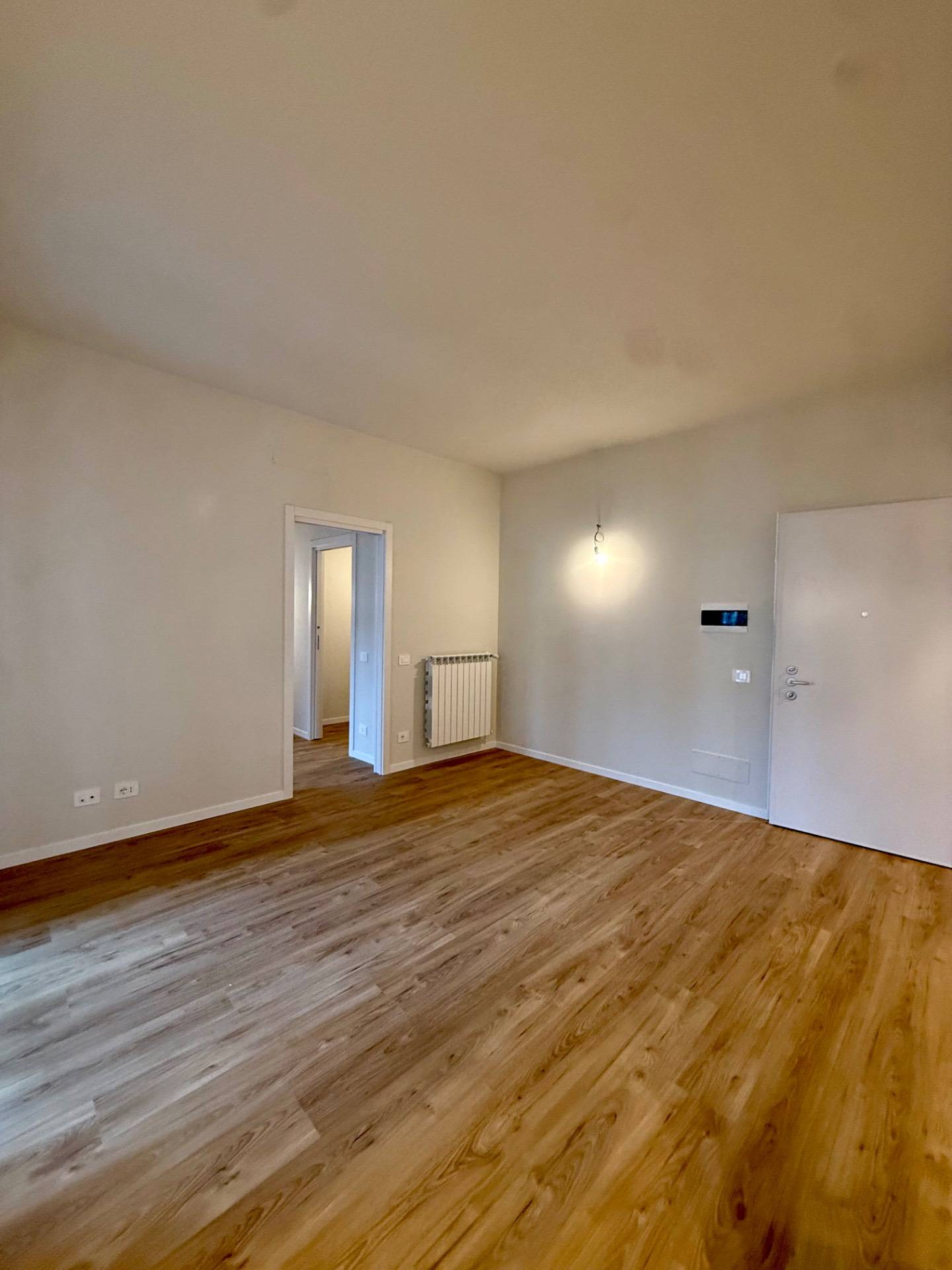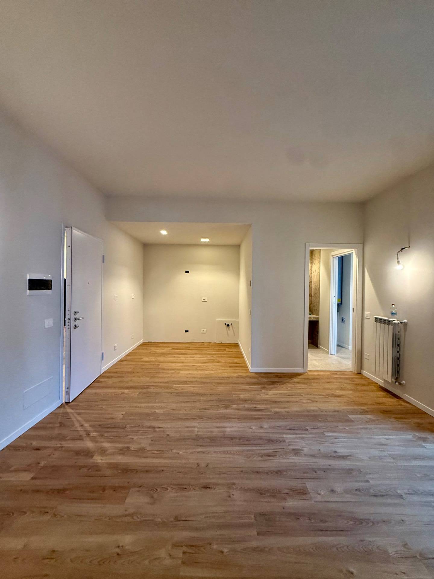 L'appartamento, completamente ristrutturato, è composto da ingresso comune di proprietà, soggiorno con zona cottura, bagno finestrato e ben disimpegnato, camera matrimoniale con cabina armadio e ampio balcone con affaccio su tranquilla corte interna.