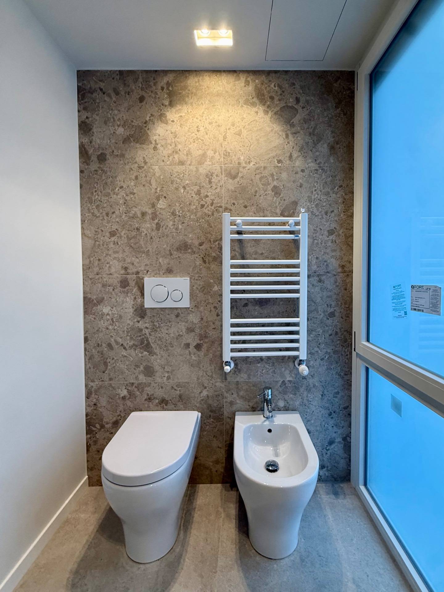 L'immobile è dotato di riscaldamento centralizzato con nuovi termoconvettori e valvole termostatiche, produzione autonoma di acqua calda sanitaria, serramenti in PVC con doppio vetro ad alta efficienza energetica e predisposizione per impianto di climatizzazione a due zone.