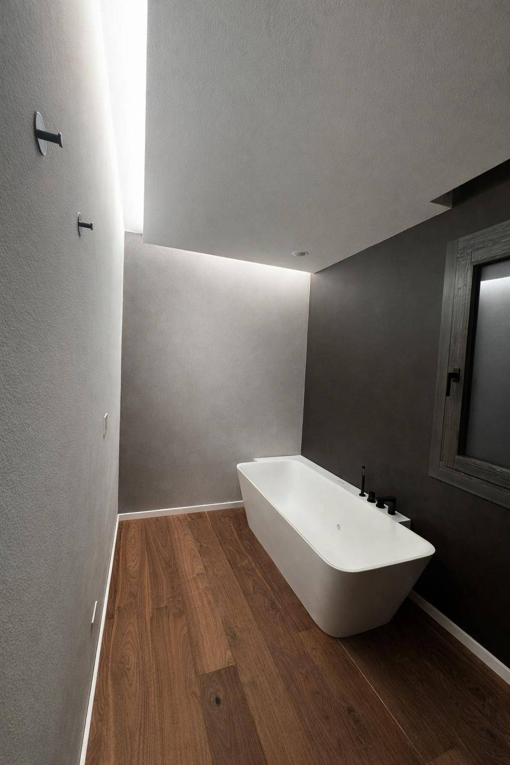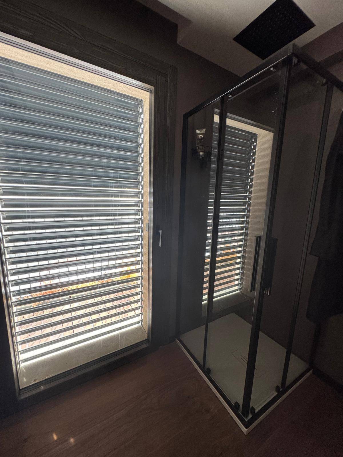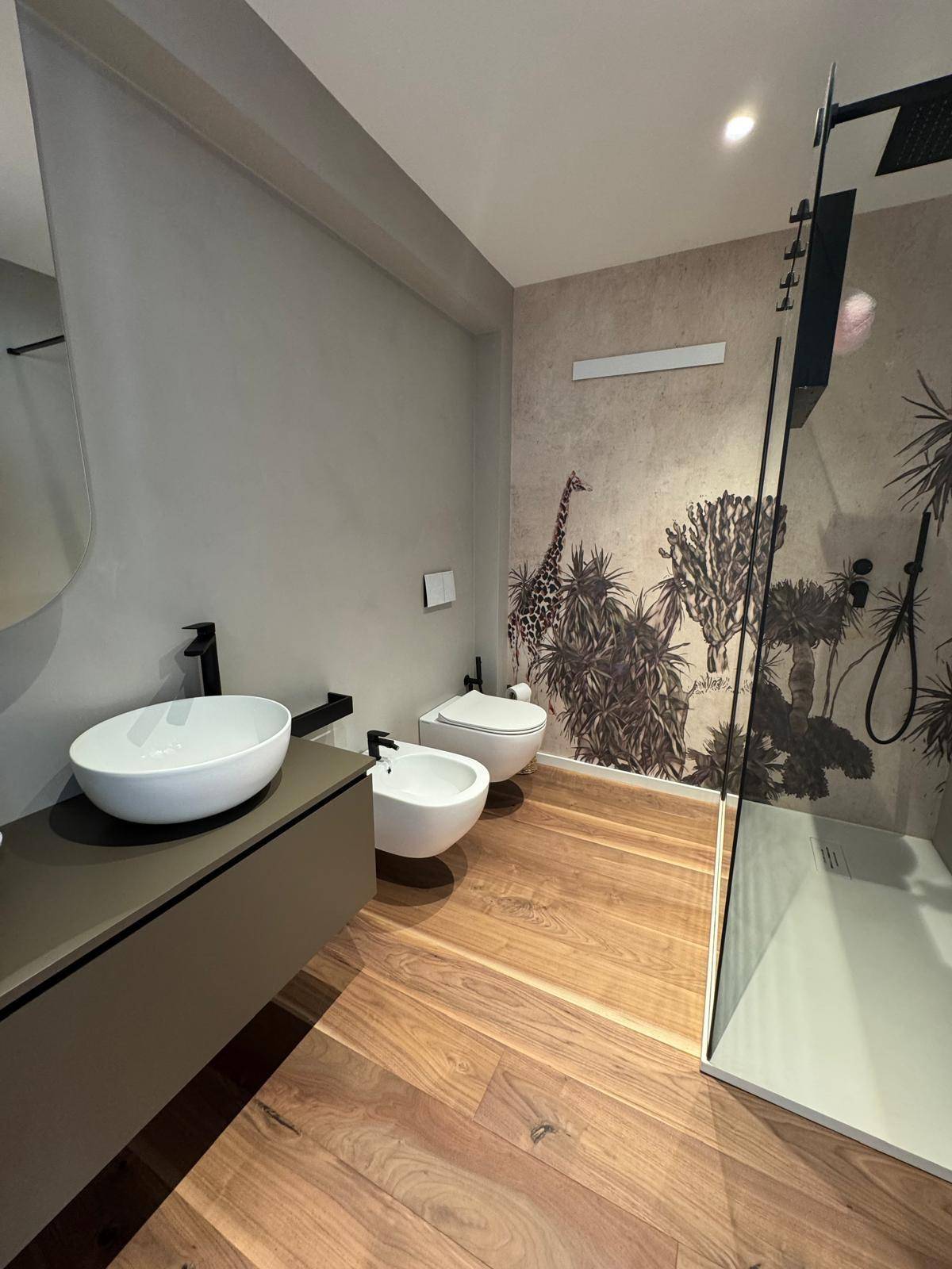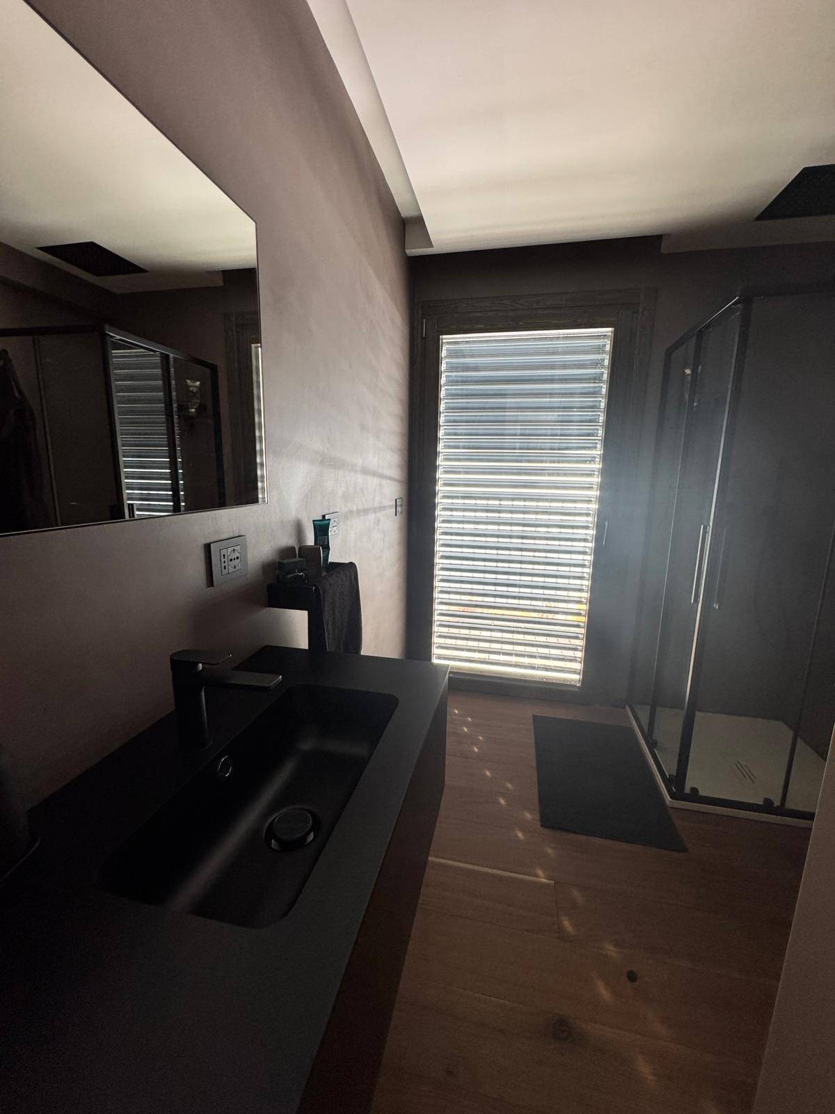 Appartamento composto da ampio soggiorno, angolo cottura,3 bagni, 2 camere matrimoniali con possibilità di fare la terza camera, terrazzo di 40 mq coperto e giardino a piano panoramico, riscaldamento a pavimento, raffrescamento a pavimento, Wmc controllata, Impianto fotovoltaico privato con batterie, impianto domotico a controllo remoto, predisposizione sauna con apposita vetrata, predisposizione di tende elettriche in tutto l'alloggio, frangisole regolabili, pavimento in vero noce americano, sanitari e miscelatori (cielo e fantini neri opaco), serramenti triplo vetro legno-alluminio, impianto di irrigazione automatico.
