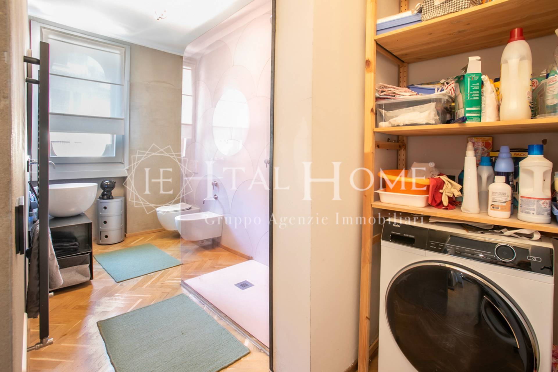 Le finiture sono curate e di pregio: tutte le porte sono a scomparsa nel muro, i pavimenti sono in parquet, i serramenti in doppio vetro legno ed è già presente l'impianto di condizionamento.