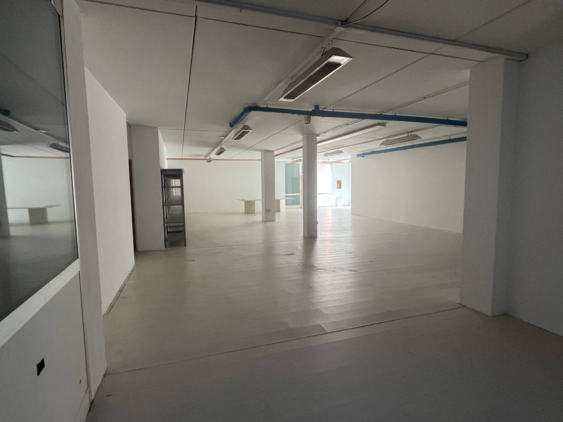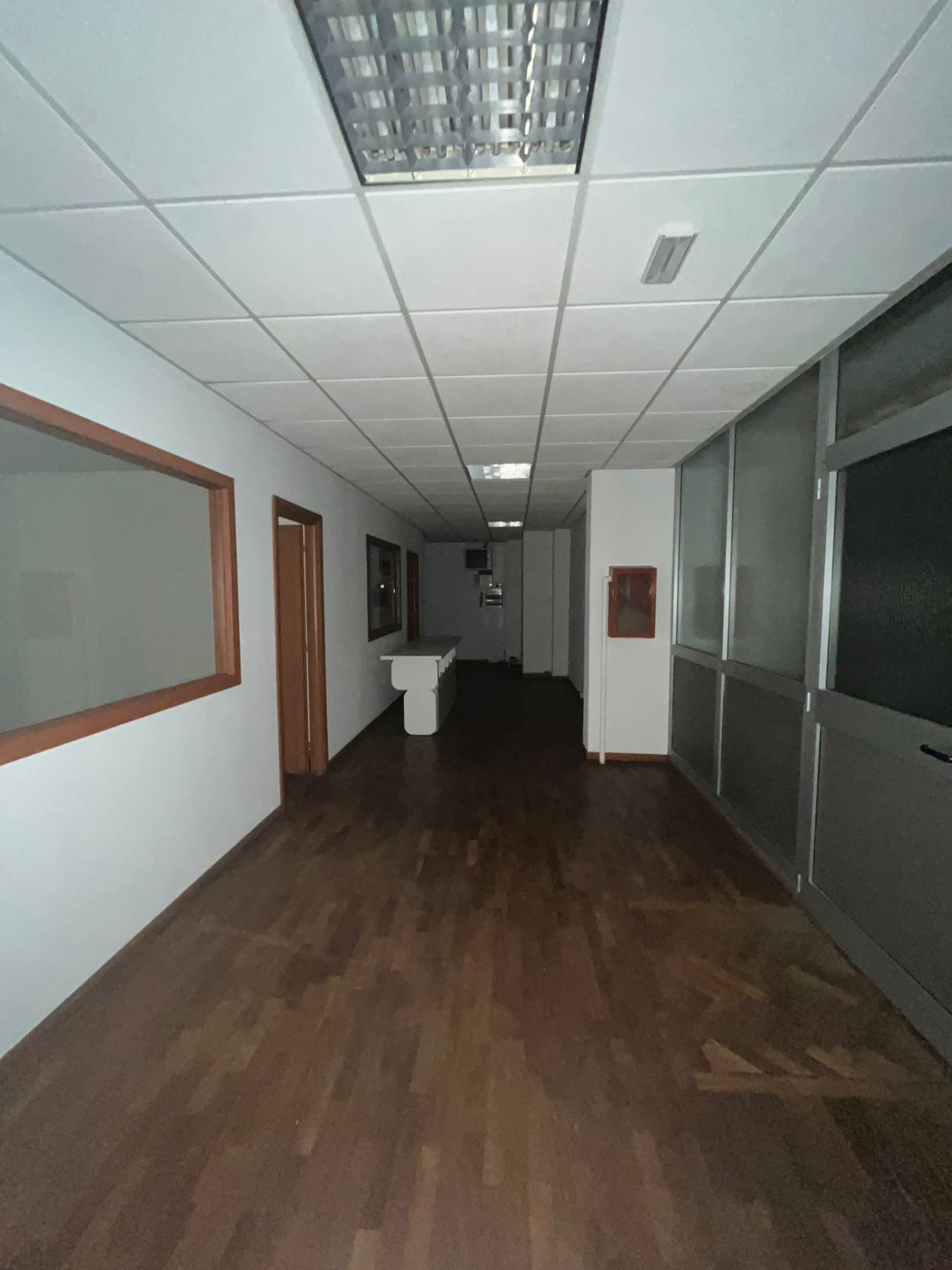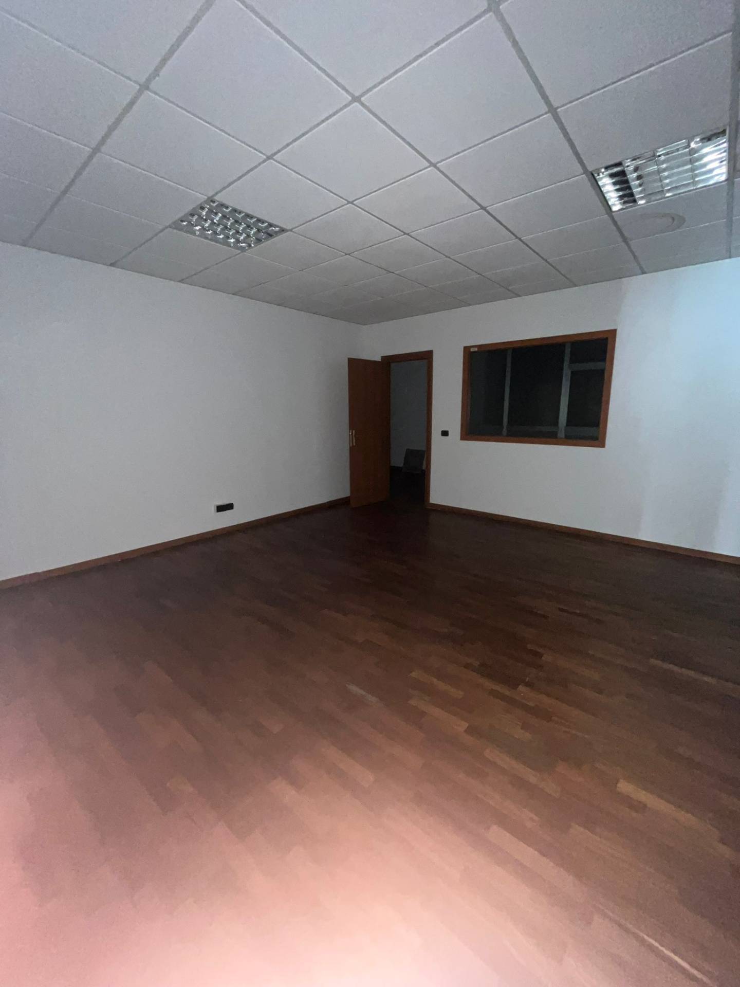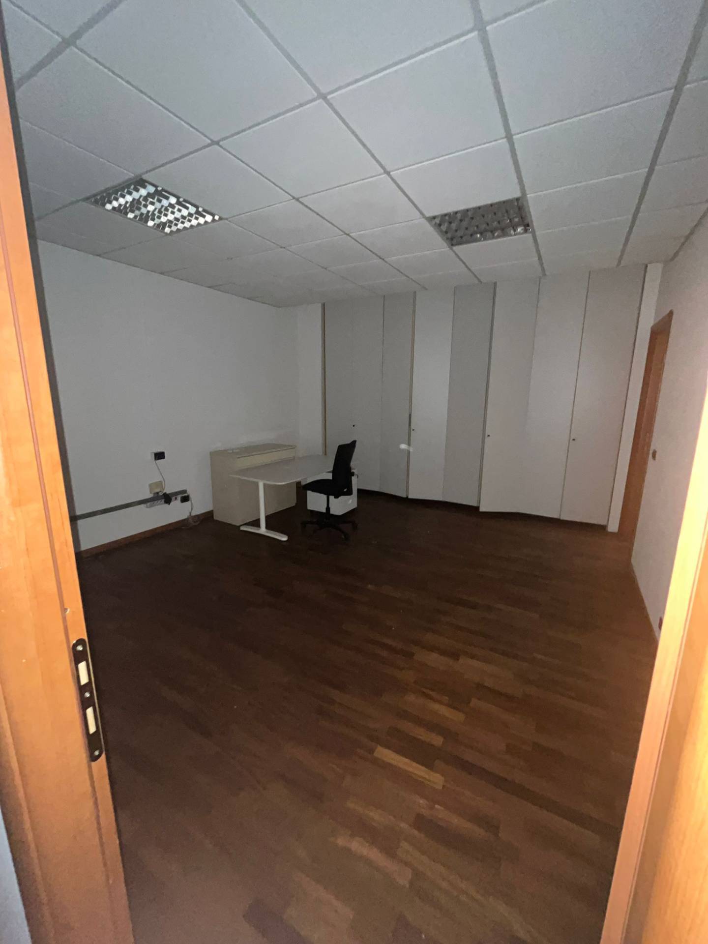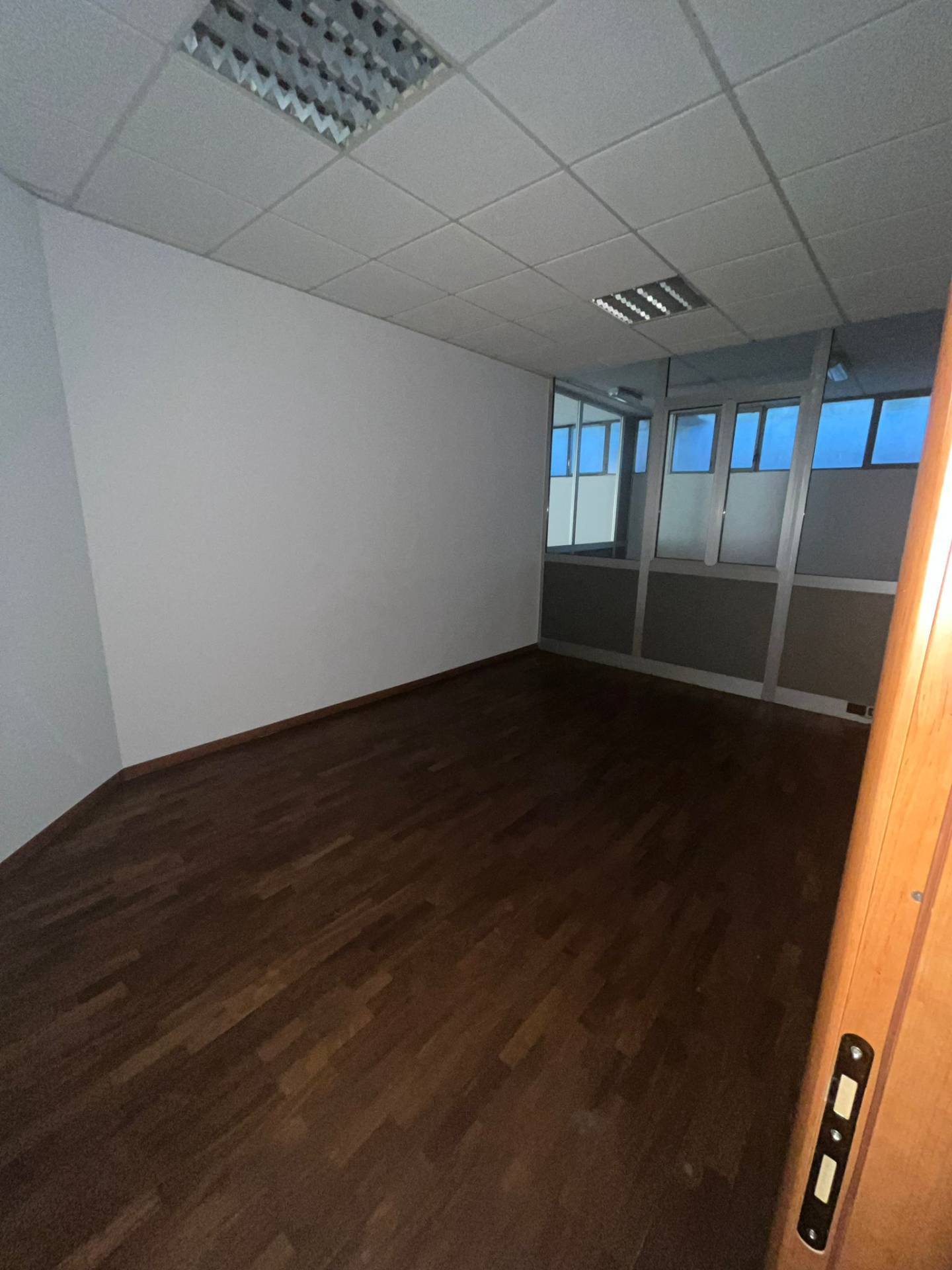 Impianto di illuminazione funzionante, pavimentazione in laminato effetto legno in tutto l'open space e negli uffici. I muri divisori sono in cartongesso e sono presenti dei divisori con vetrate.