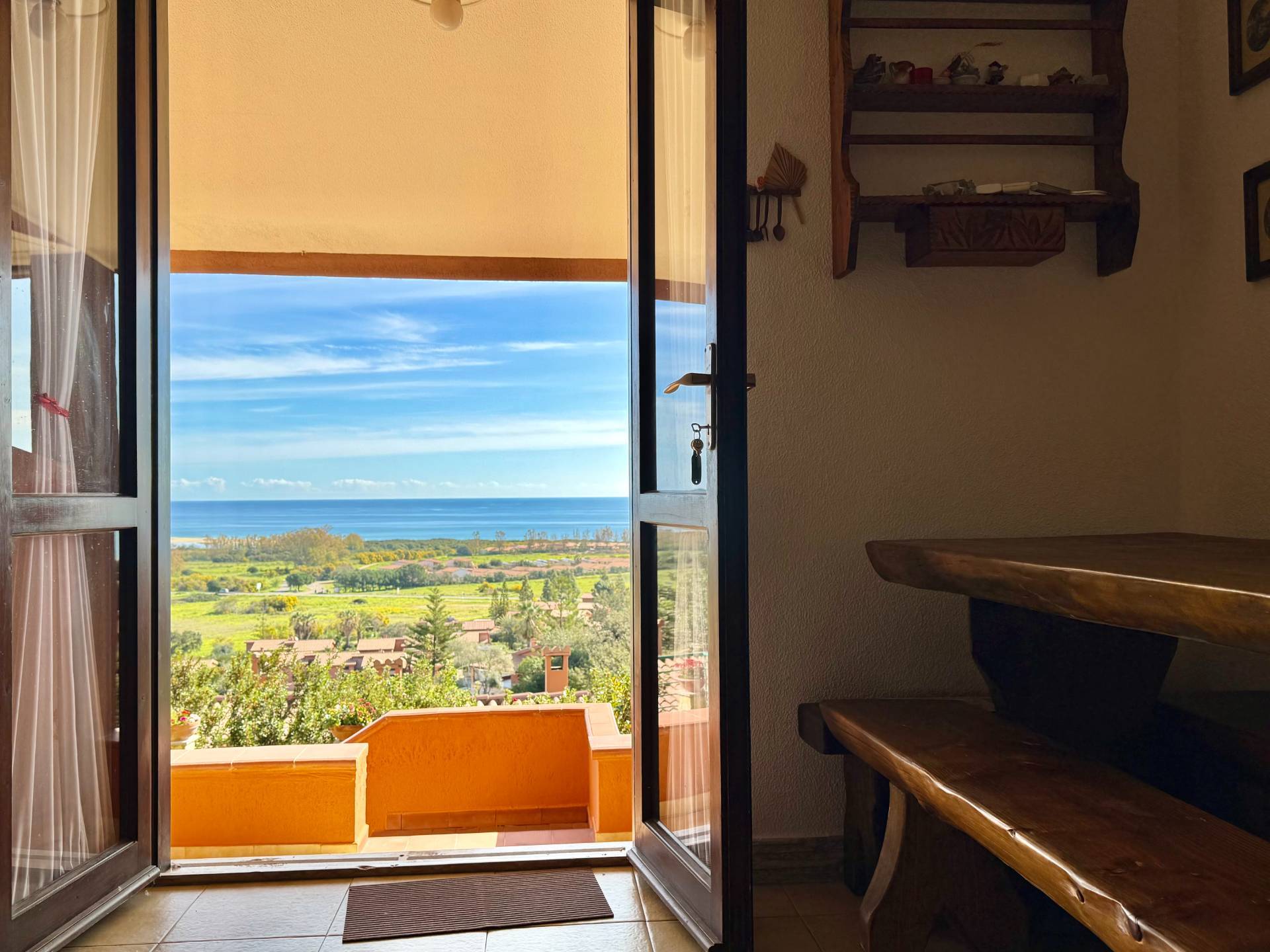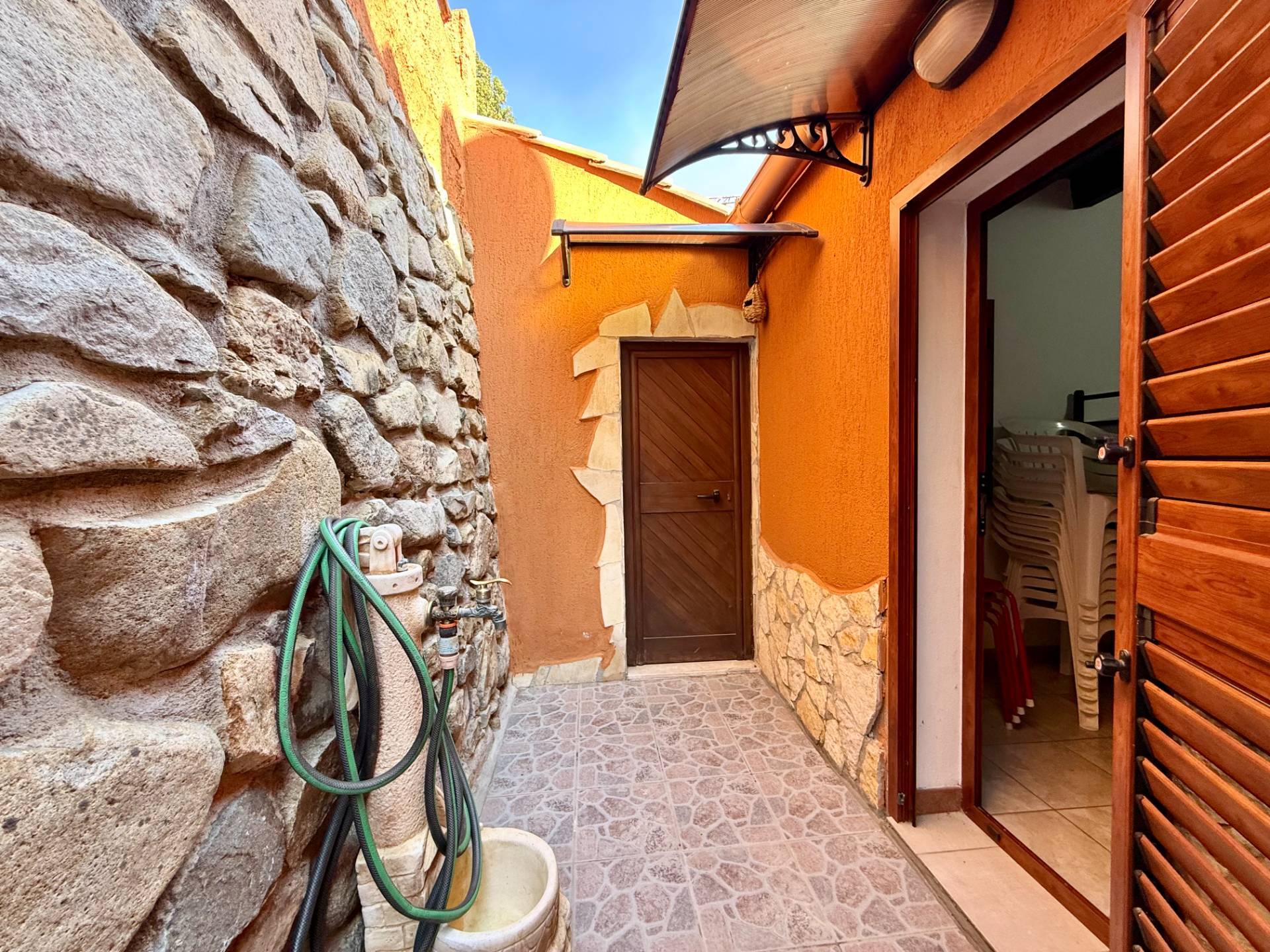 L'ingresso conduce a un soggiorno luminoso con angolo cottura, progettato per integrarsi con la grande veranda coperta. Questo spazio esterno, abitabile in ogni stagione, rappresenta il vero cuore della casa e offre un affaccio diretto sul panorama.
