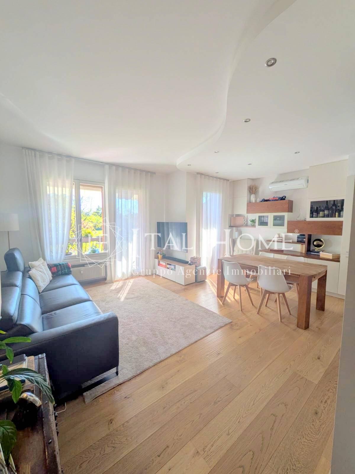Gorle-Baio all'interno dell'esclusivo "Residence Pony" immerso nel verde e nella tranquillità del rinomato quartiere, Vendesi moderno ed elegante appartamento trilocale con doppi servizi, completamente ristrutturato a nuovo, con finiture di alto livello.