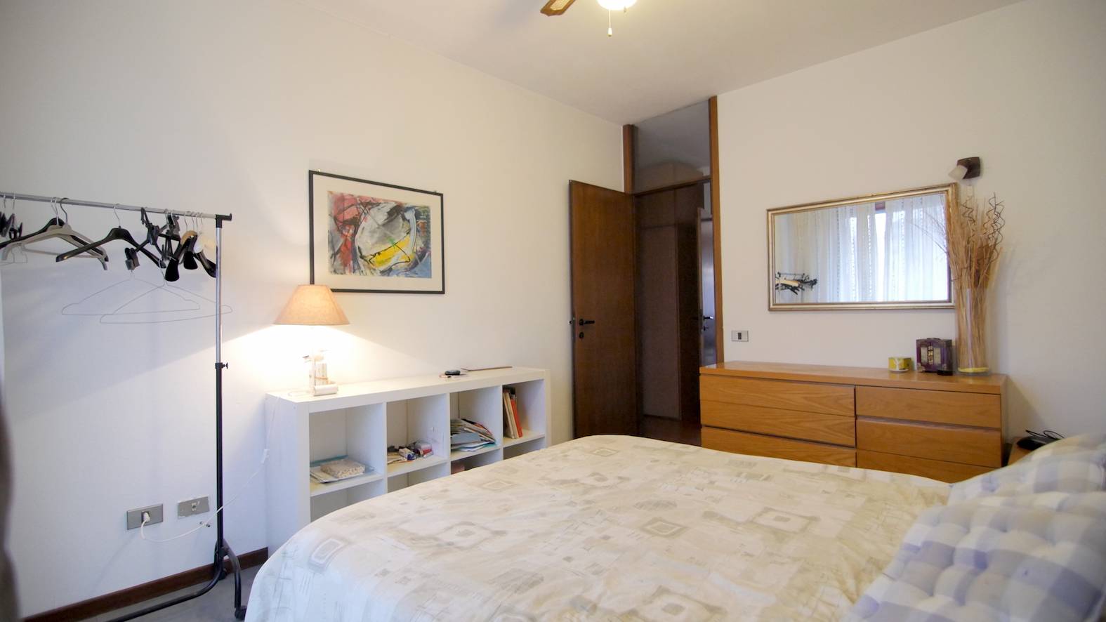 La soluzione affaccia a Sud per la zona giorno e a Nord per la zona notte, con vista anche di Citta Alta.
