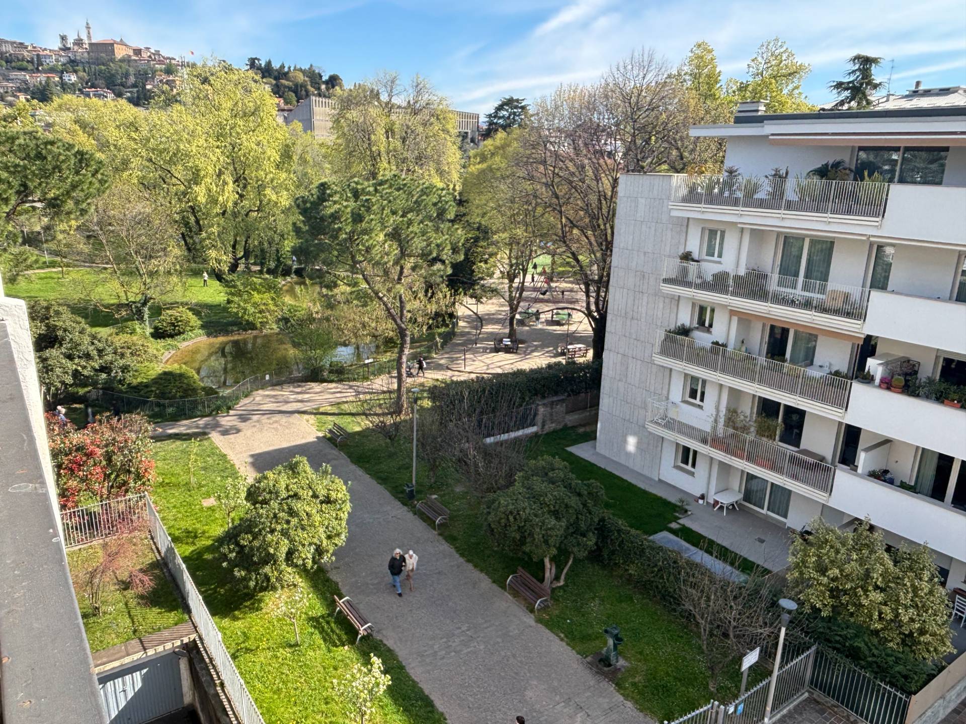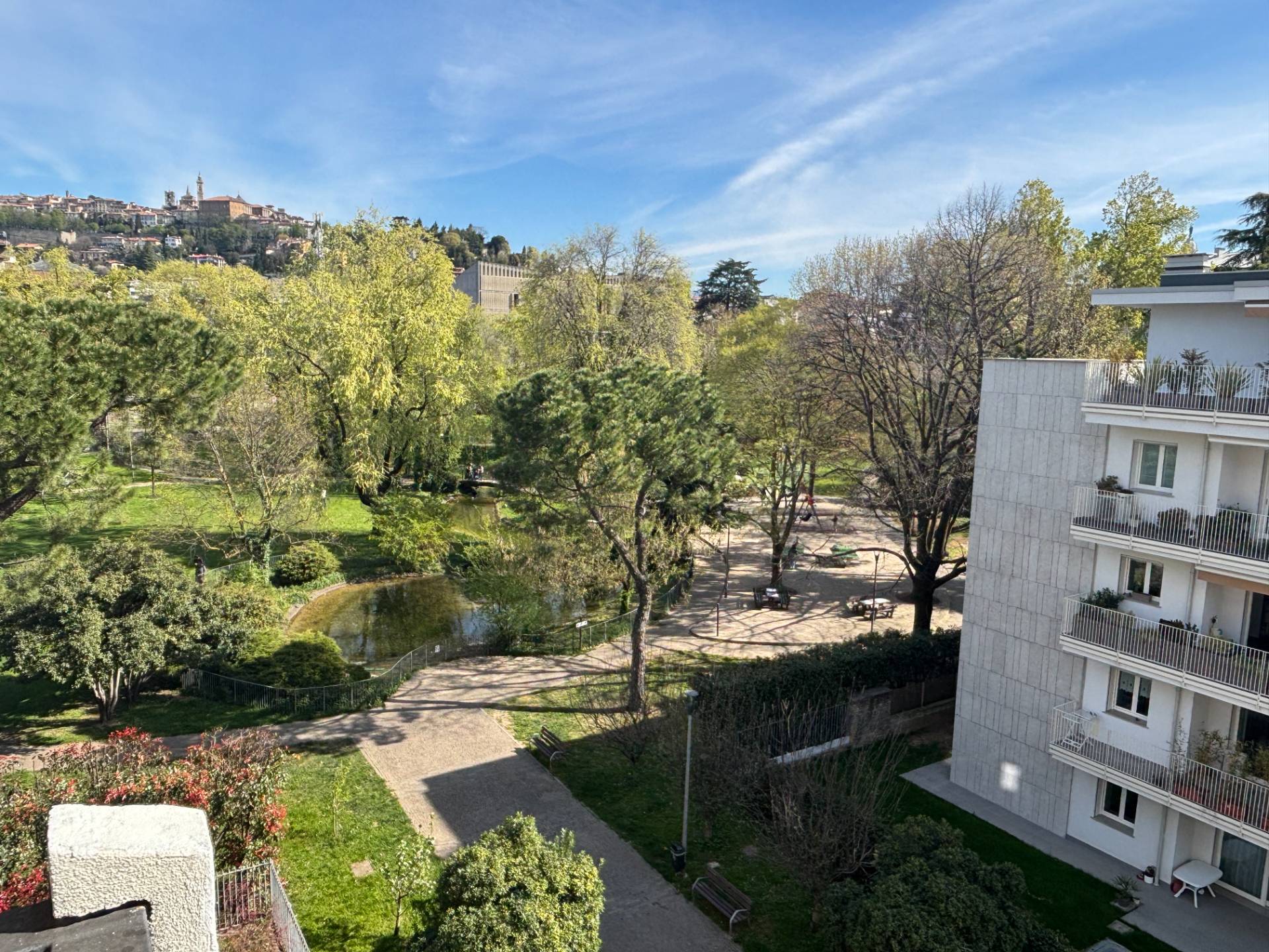 Bergamo centro, a soli 500mt da Piazza Pontida, affacciato al Parco Locatelli, proponiamo in vendita ampio, panoramico, luminoso trilocale posto a piano alto servito d'ascensore.