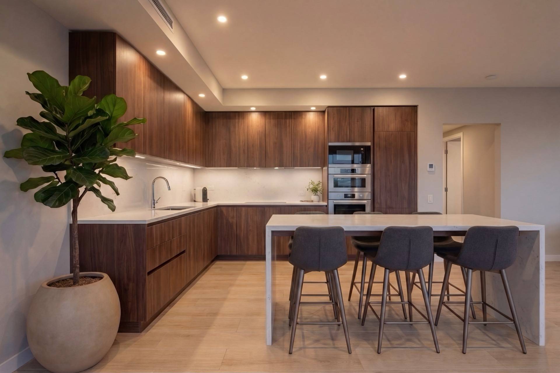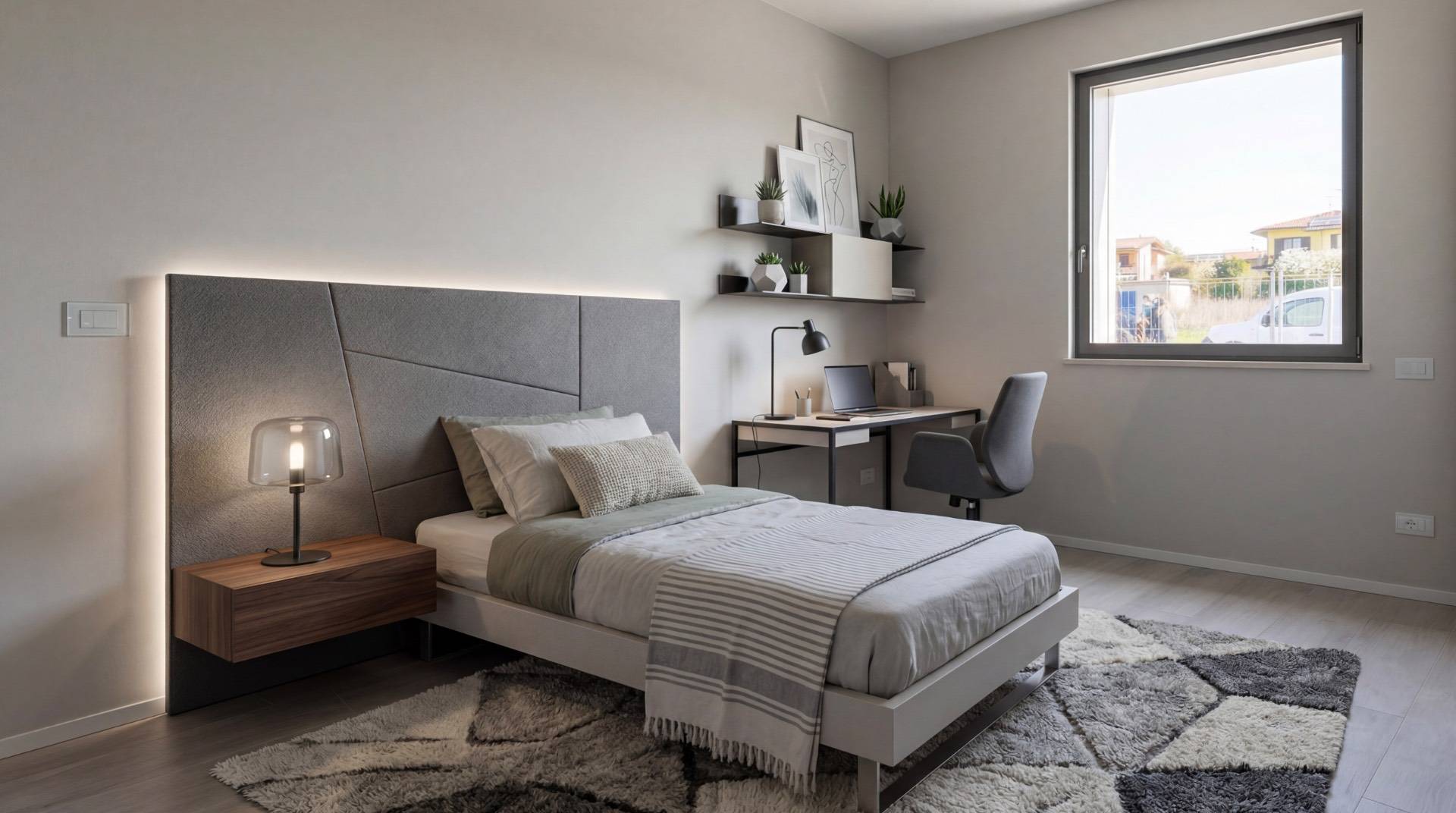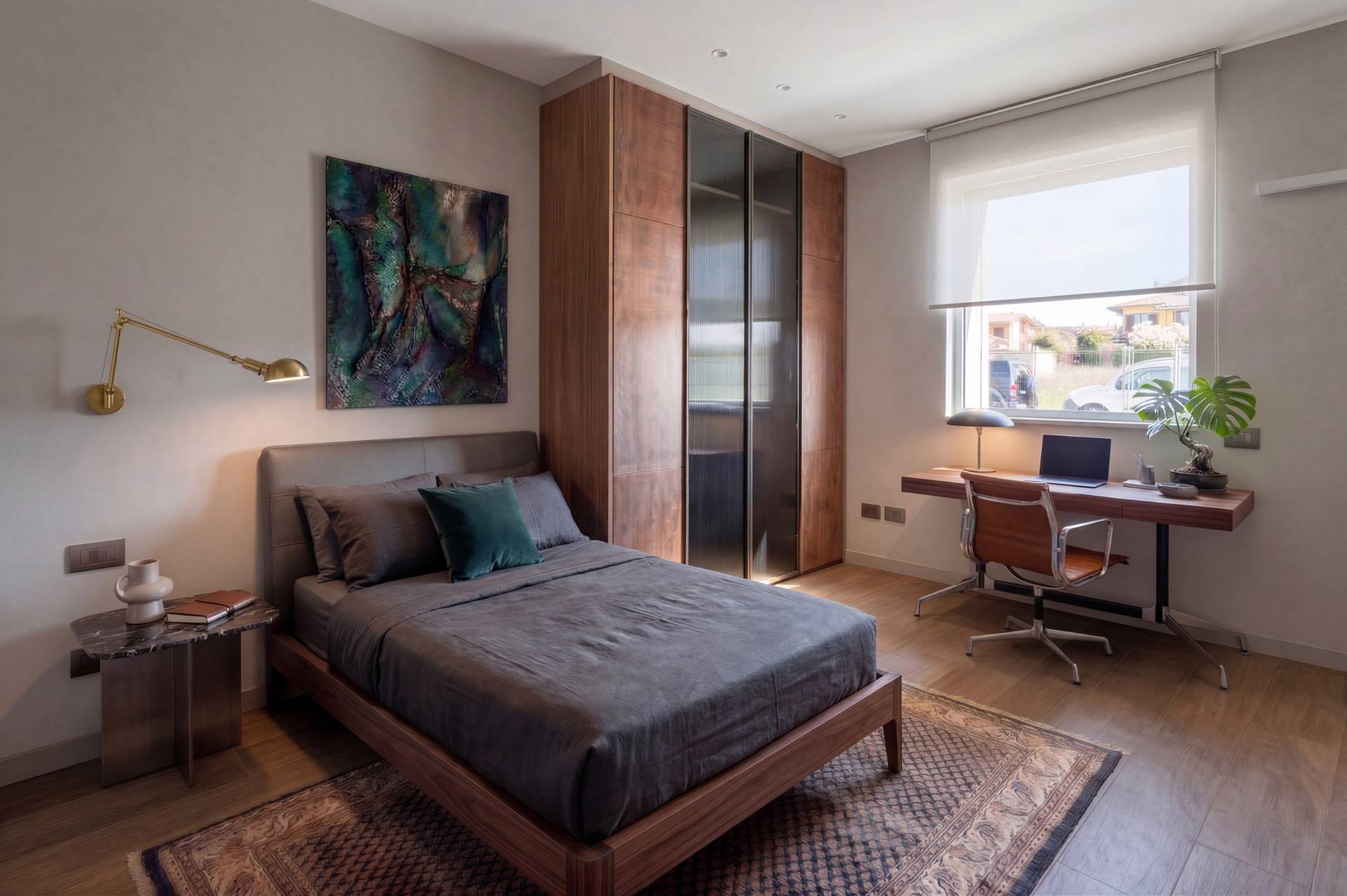 Il disimpegno conduce alla zona notte, composta dalla camera matrimoniale, seconda camera da letto e bagno con doccia walk-in, con sanitari sospesi e scalda salviette.