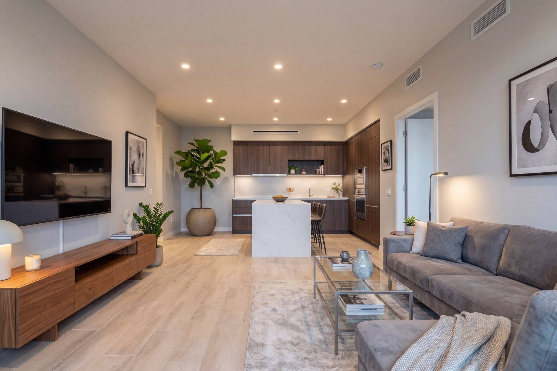 L'ingresso accede alla zona giorno Open-Space con cucina a vista e finestra scorrevole che conduce al giardino privato.